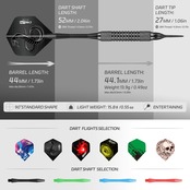 デザインのインスピレーション:矢の前後にはローレットの溝とストライプのデザインがあり、グリップ感が増し、矢のバランスが保たれています.