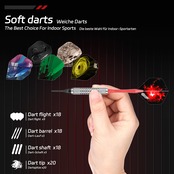 CyeeLifeプラスティックチップダーツ矢、電子ダーツボードソフトダーツ矢18本セット、プロソフトダーツ矢