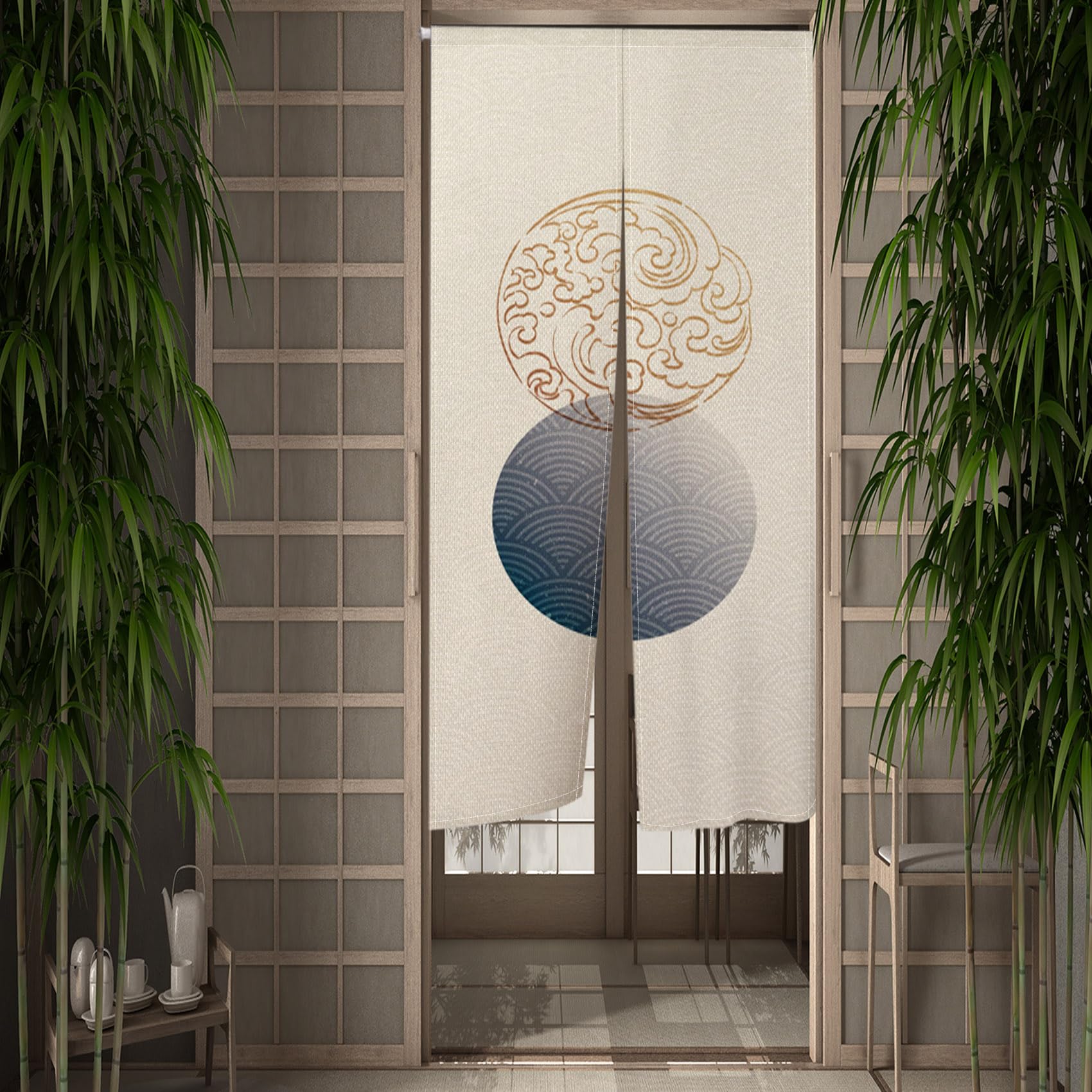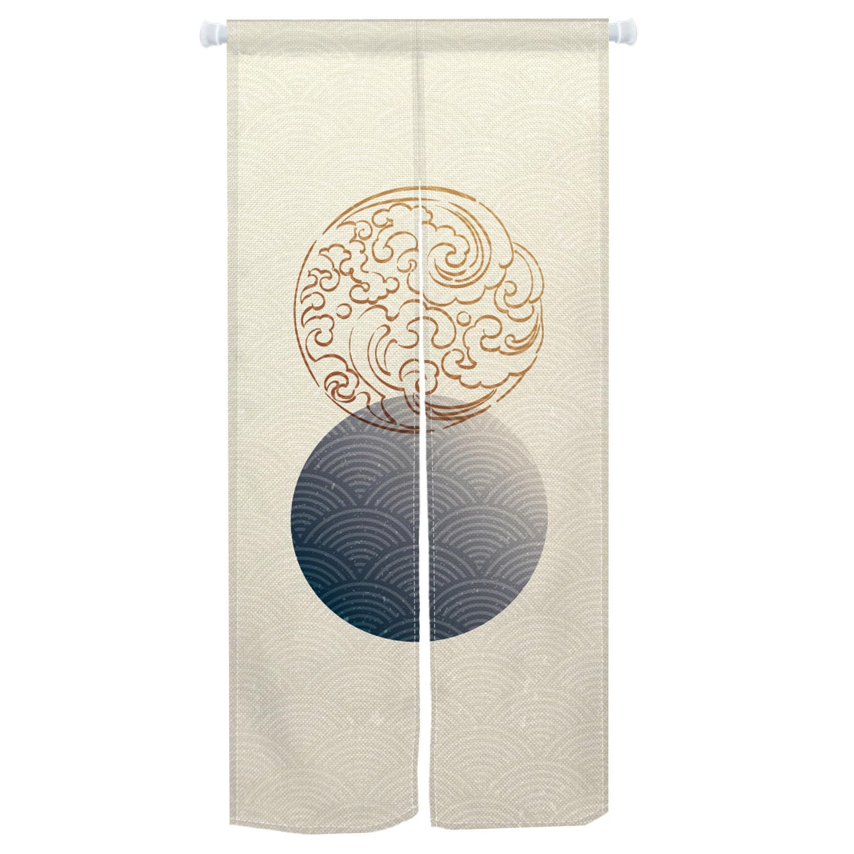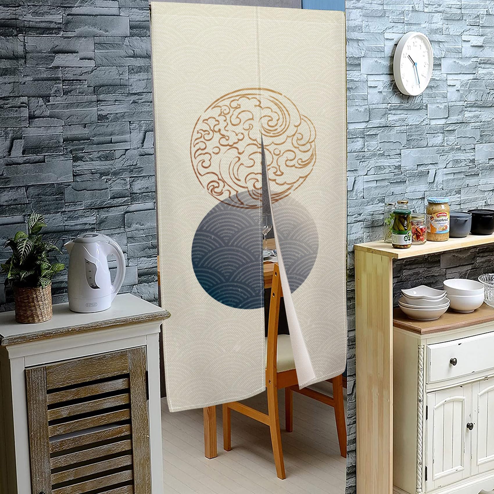Qinunipoto のれん 和風 シンプル風 波の柄 暖簾 幅72×丈150cm インテリア 目隠し おしゃれ すだれ 遮光 部屋 間仕切り ロング カーテン 麻調ポリエステル製 オーダー可 冷/暖気遮断 簡単取付 リビング 玄関/キッチン/お風呂/喫茶店/出入り口/四季兼用