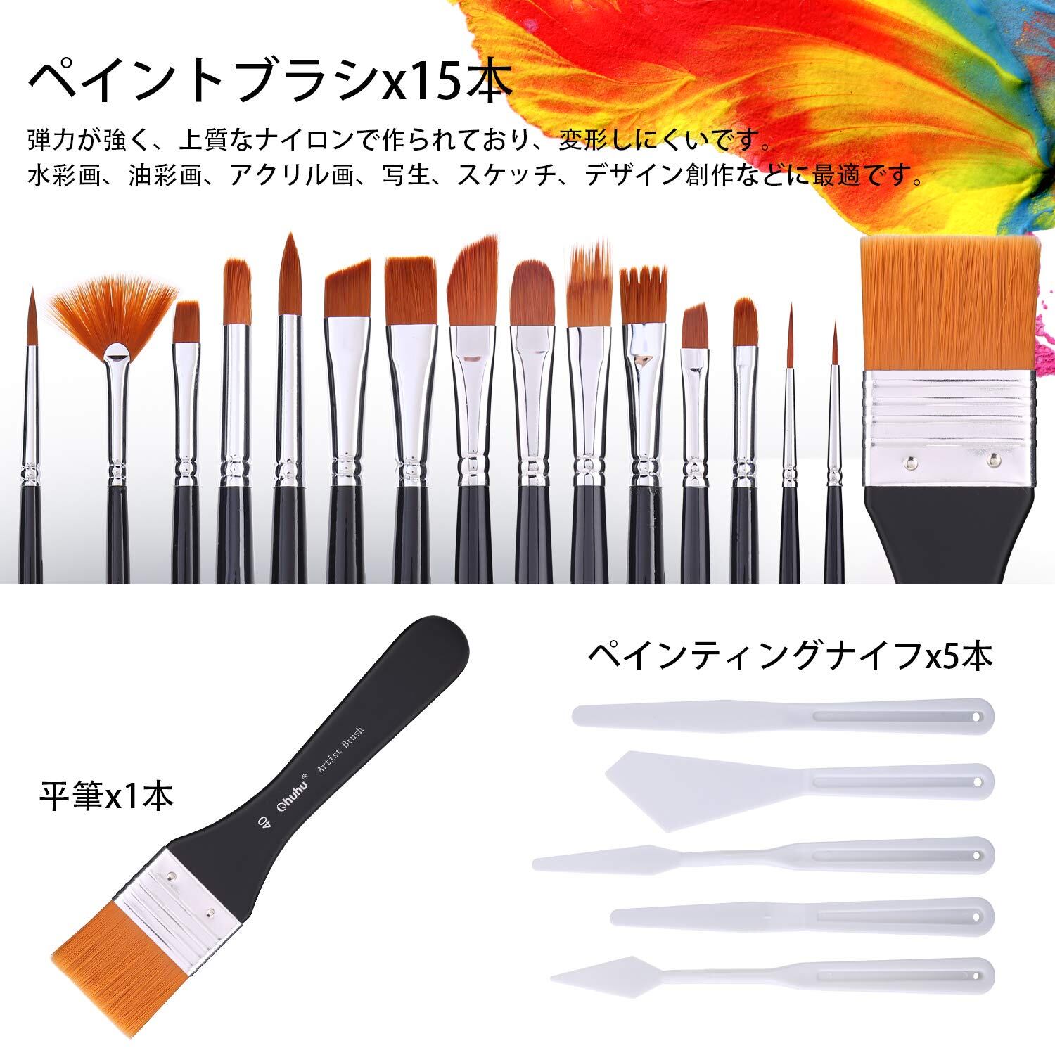 【ペイントブラシとペインティングナイフ付き】弾力が強く、上質なナイロンで作られており、変形しにくいです。初心者も専門家も大変使いやすい筆です。丸筆、フィルバート型とフラット型があり、様々なニーズに対応可能。ペインティングナイフも5本付、筆とは異なる力強く硬質な表現ができます。ご注意:使用後、筆は洗い終わったら、十分乾燥させてから保存してください。