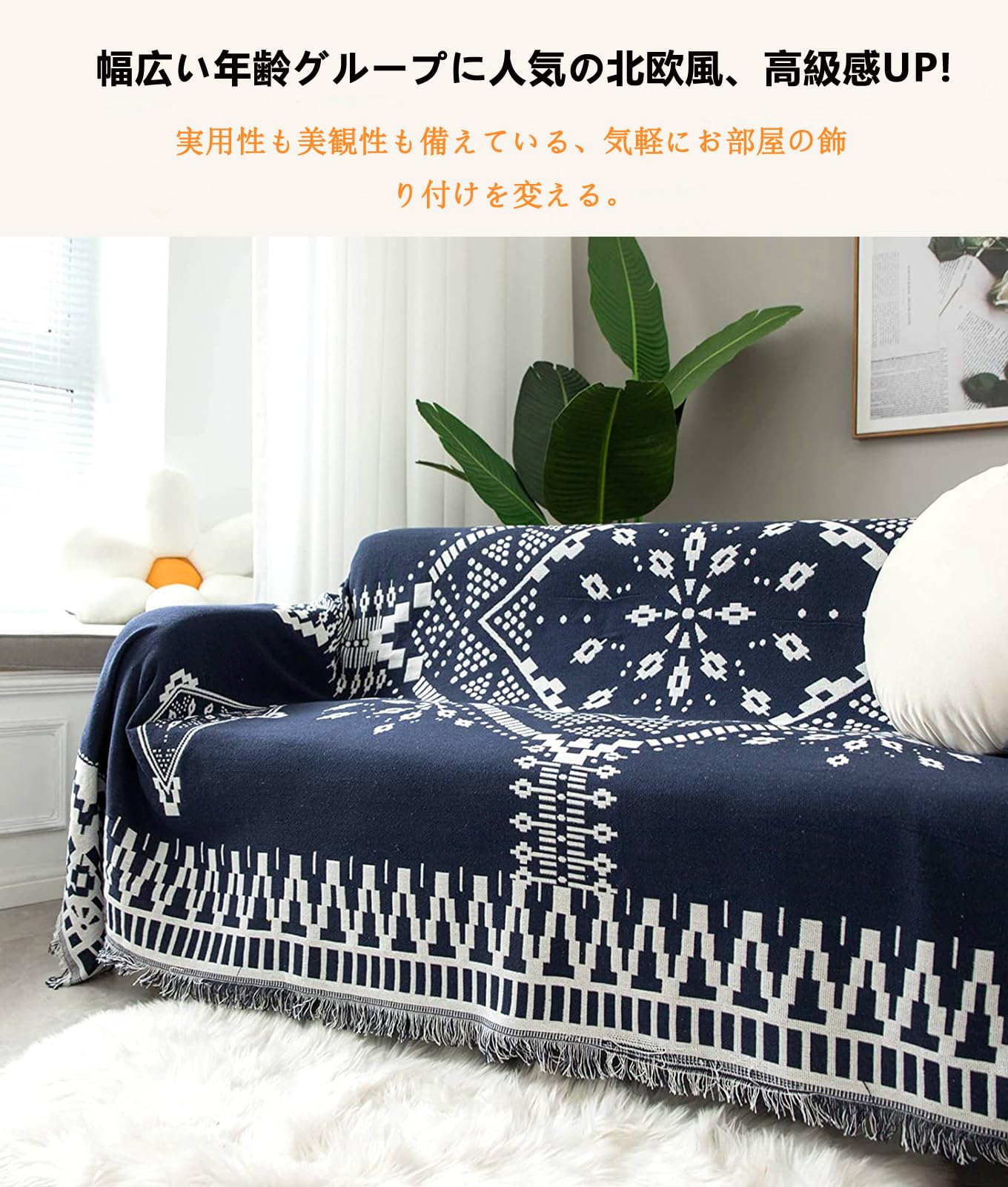 【特価商品】TMVOK マルチカバー ブランケットフリンジ付き ソファカバー おしゃれ 北欧風 ソファーかばー リバーシブル 汚れ防止 保護カバー 綿 2人掛け 3人掛け 肘付き 肘なし カウチ カバー テーブルクロス 長方形 大きい 水洗い 四季通用 180*230cm | ニコニコSHOP