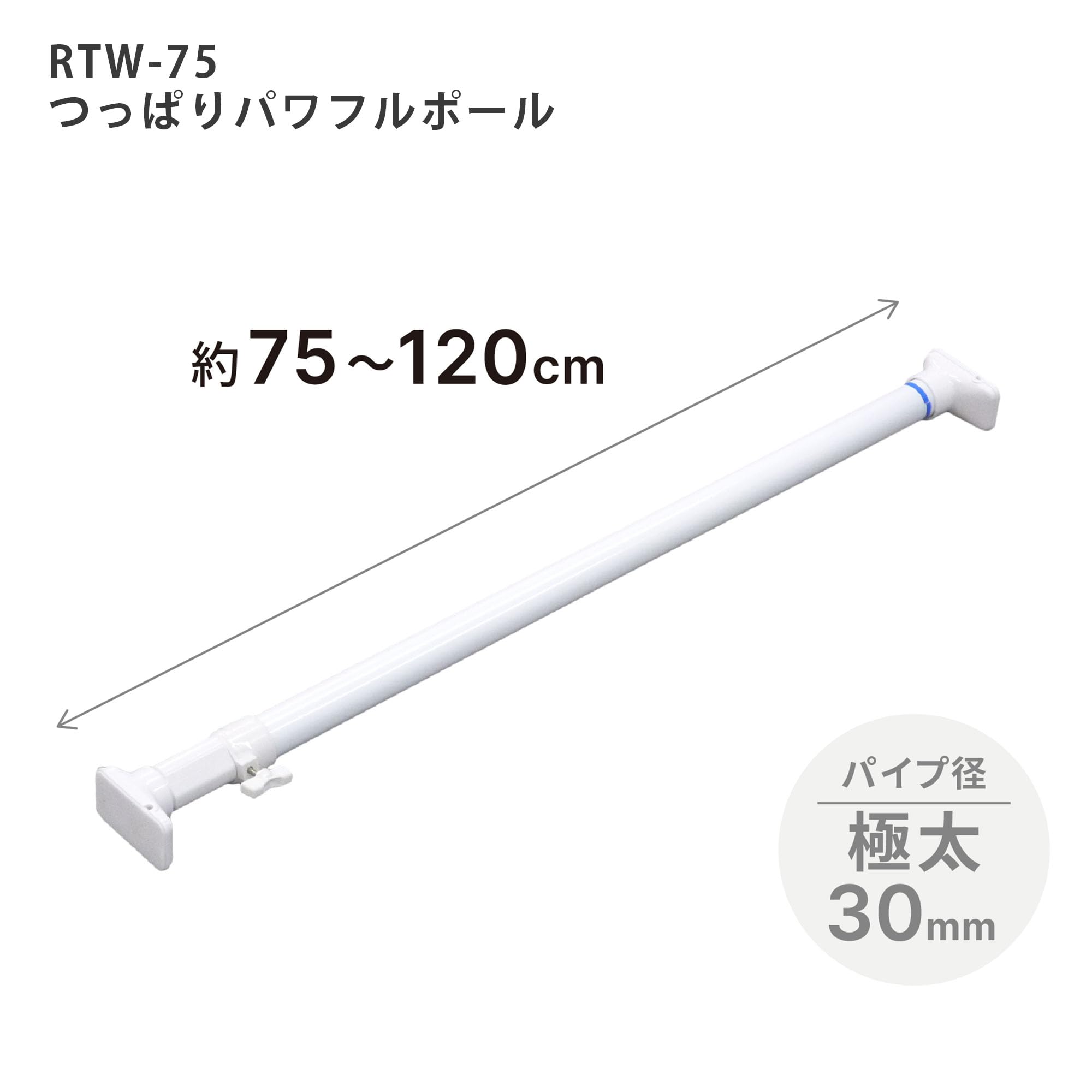 HEIAN SHINDO つっぱり棒 ジャッキ式超強力タイプ ホワイト 幅75~120cm 耐荷重50~30kg パイプ直径3cm RTW-75A 平安伸銅工業