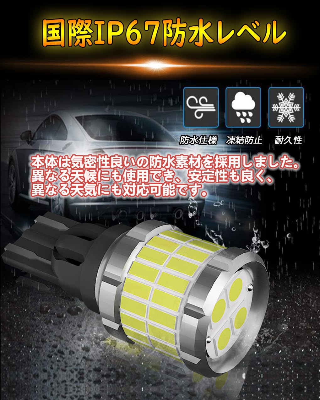 【高輝度&拡散照射仕様】超高発光効率LEDチップ搭載、4000LM(2000LM*2) 明るさ、超高輝度な6000Kホワイト光、バックランプに使用したところ、眩し過ぎる位の明るさがあります。全方位照射仕様。昼間の環境で十分確認出来る明るさと拡散性、バックランプに最適な商品です。是非おすすめしたいです。