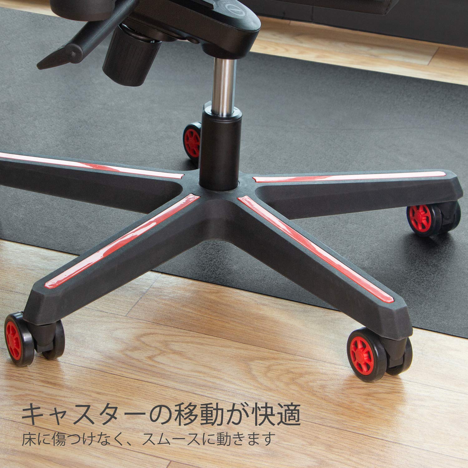 騒音対策の仕様:1.5の厚さでキャスターをマットに移動すると、床の緩衝材として、大きなキャスターの回転音を軽減することもできます。集合住宅ではマストアイテムです。夜中にゲーミングと作業するときは、騒音を心配することがなく、やり続けます。
