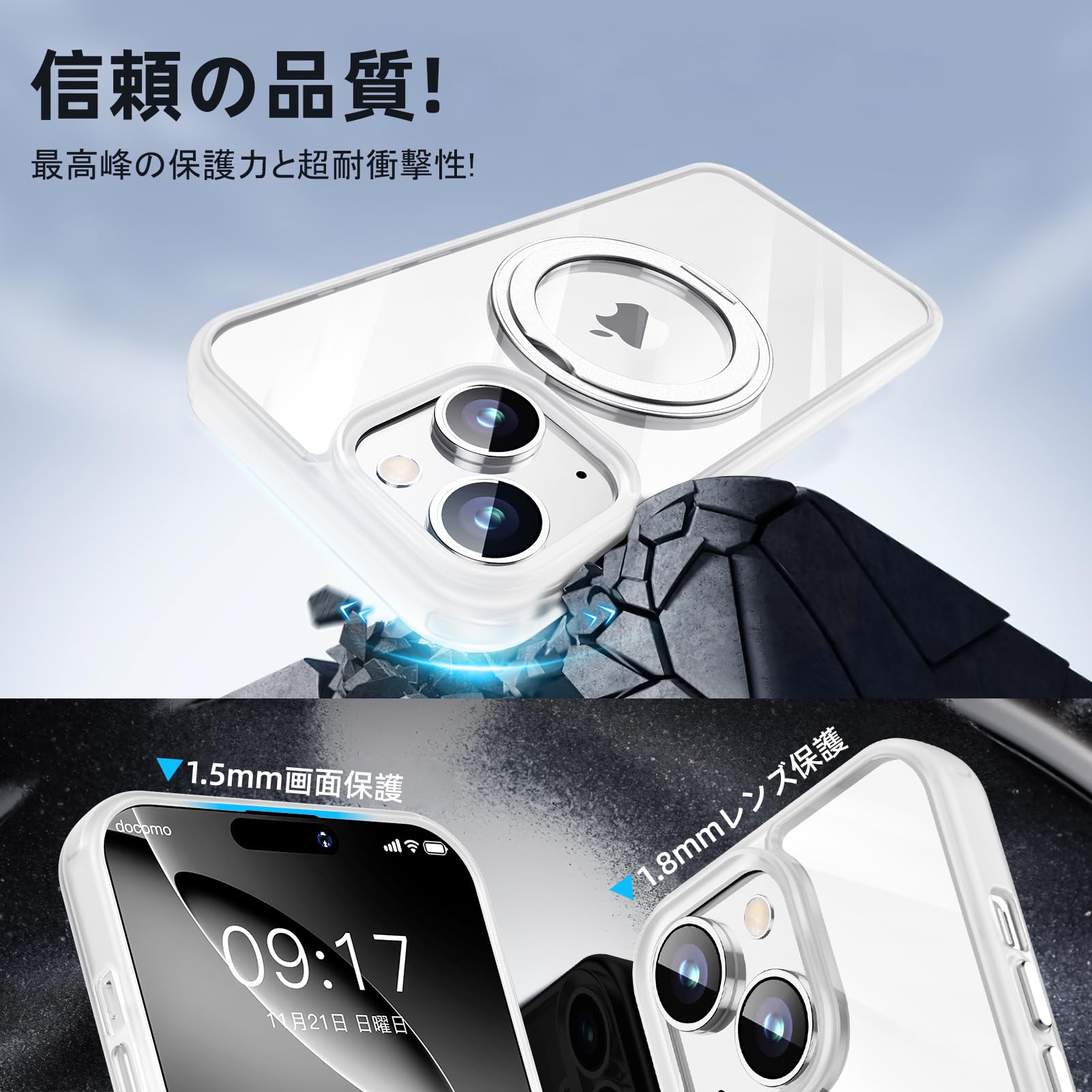 【MagSafe対応&超磁力】iPhone 15用ケース。ケース内部には、360度全周に埋め込まれた一体型磁石があり、強力な吸着力でしっかりと固定しながら充電が可能です。MagSafeアクセサリーも確実にケースに吸着します!【①本製品はMagSafeデバイスに対応していますが、Magsafeウォレット使用時に「探す」機能は表示されません;②QIワイヤレス充電には対応しておりませんので、ご購入前にご検討いただければ幸いです。】