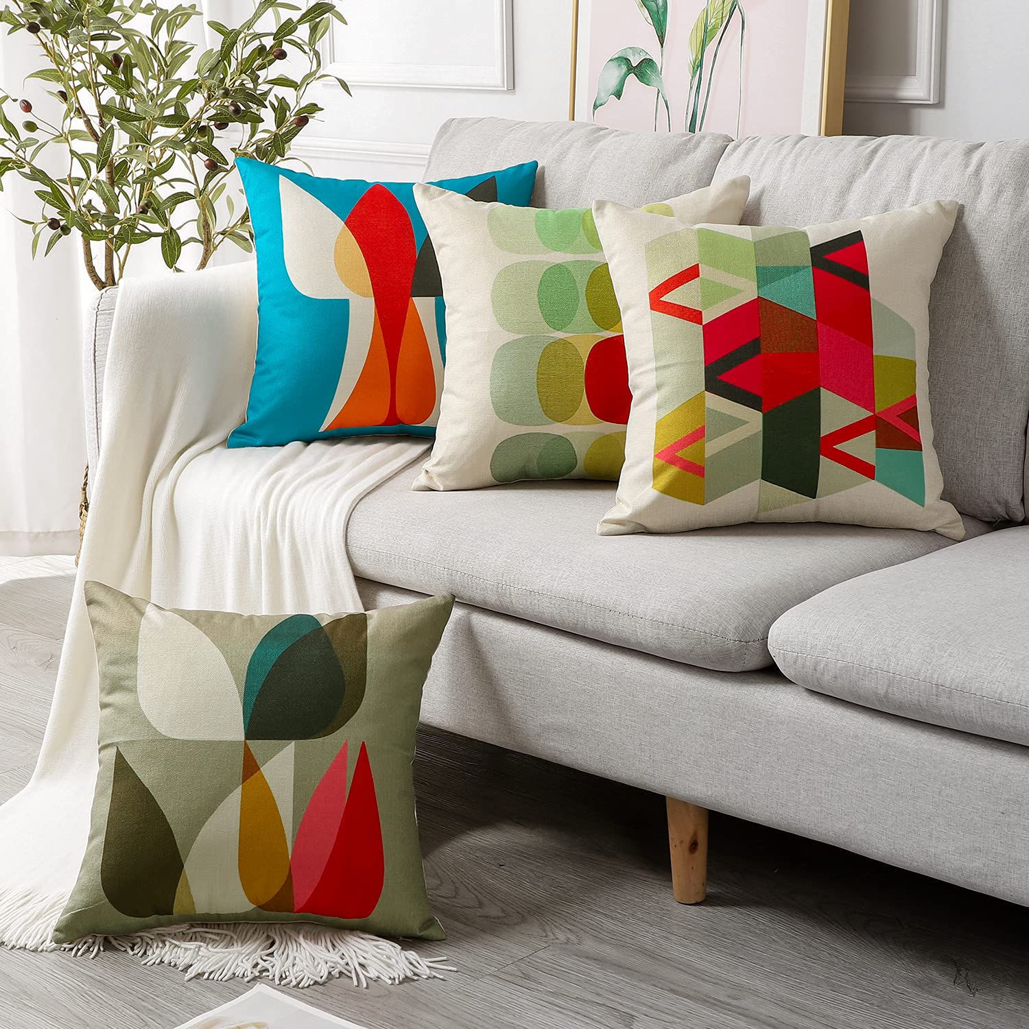 【人気商品】YunJeude クッションカバー 45x45cm 4枚セット 北欧 幾何学模様 違う柄 リネン 亜麻 可愛い おしゃれ ファスナー モダン 家庭装飾 車 飾り 四季通用 インテリア (45x45 幾何学模様) | ニコニコSHOP