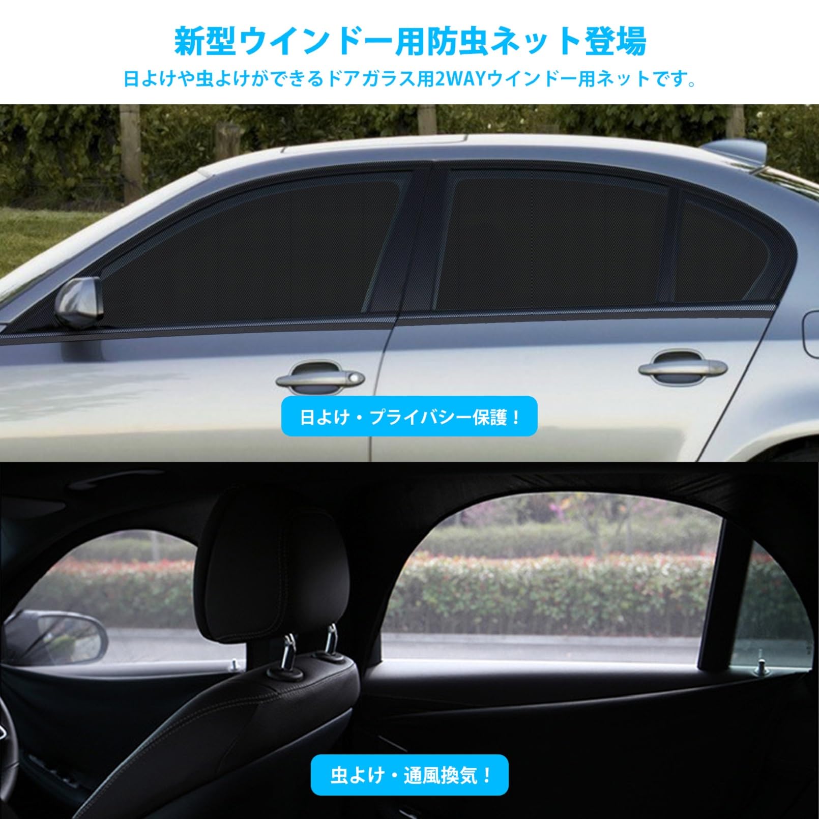 【新型ウインドー用防虫ネット登場】車用日よけ及び虫よけ2in 1を結合したウインドー用ネットが2023新登場!虫除けネットの基礎の上に黒い日除け面を追加し、二重構造で、風通し、防虫効果がよく、遮光効果もさらに向上した。外部からの熱やUVも大幅にカットしてくれ、駐車しながら冷房と合わせて使うことで効率性も向上してくれます。なお、夜が来ると、内側日除けネットはファスナーで開けて、窓を開放し、涼しい風を入り、車中で快適に過ごすことが出来。