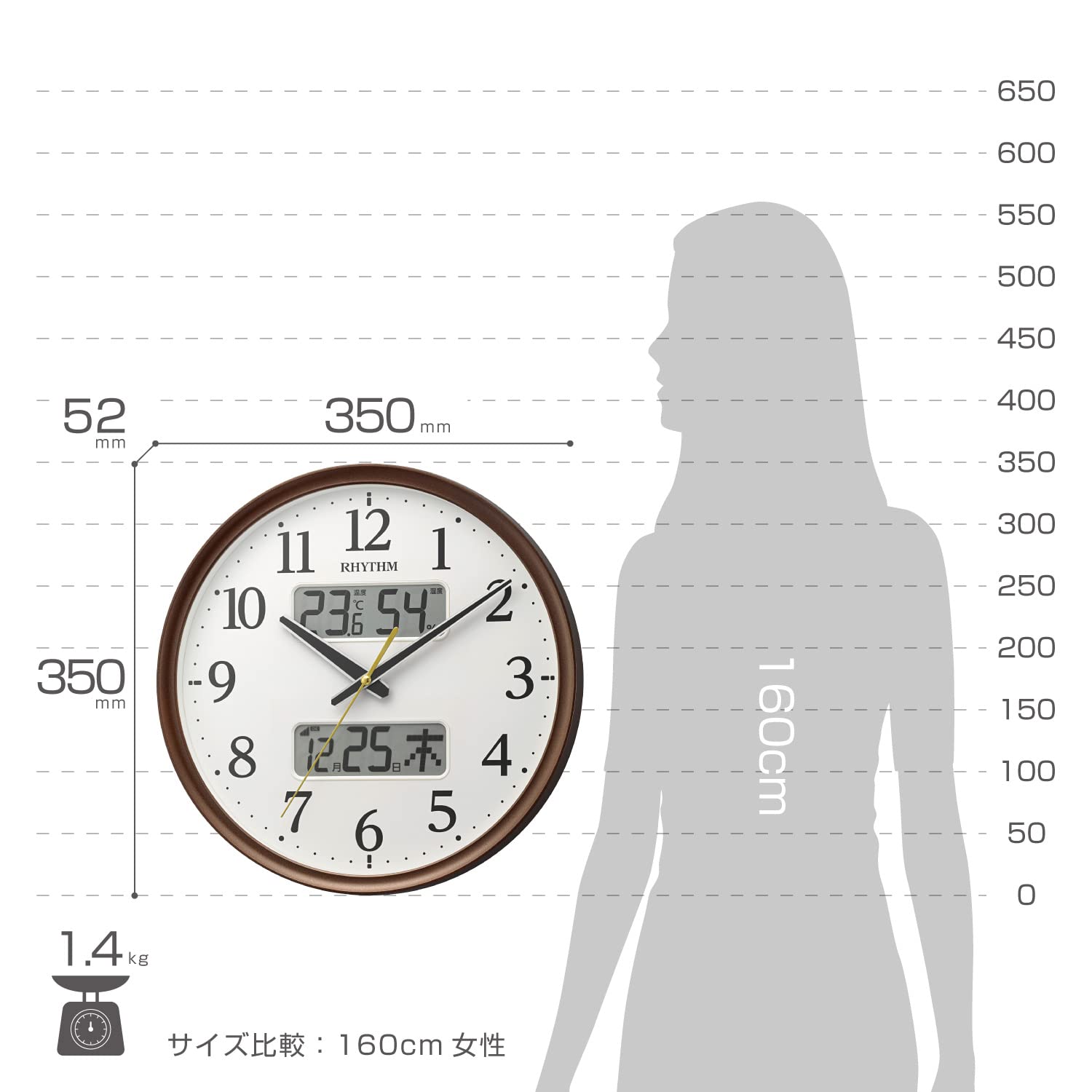 リズム(RHYTHM) 掛け時計 電波時計 アナログ 連続秒針 温度 湿度 カレンダー 茶 Φ35x5.3cm 8FYA03SR06