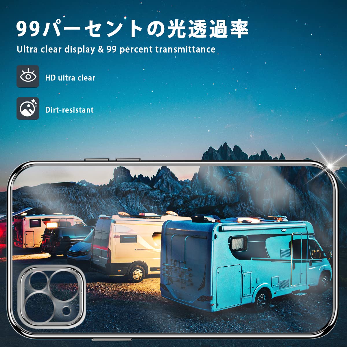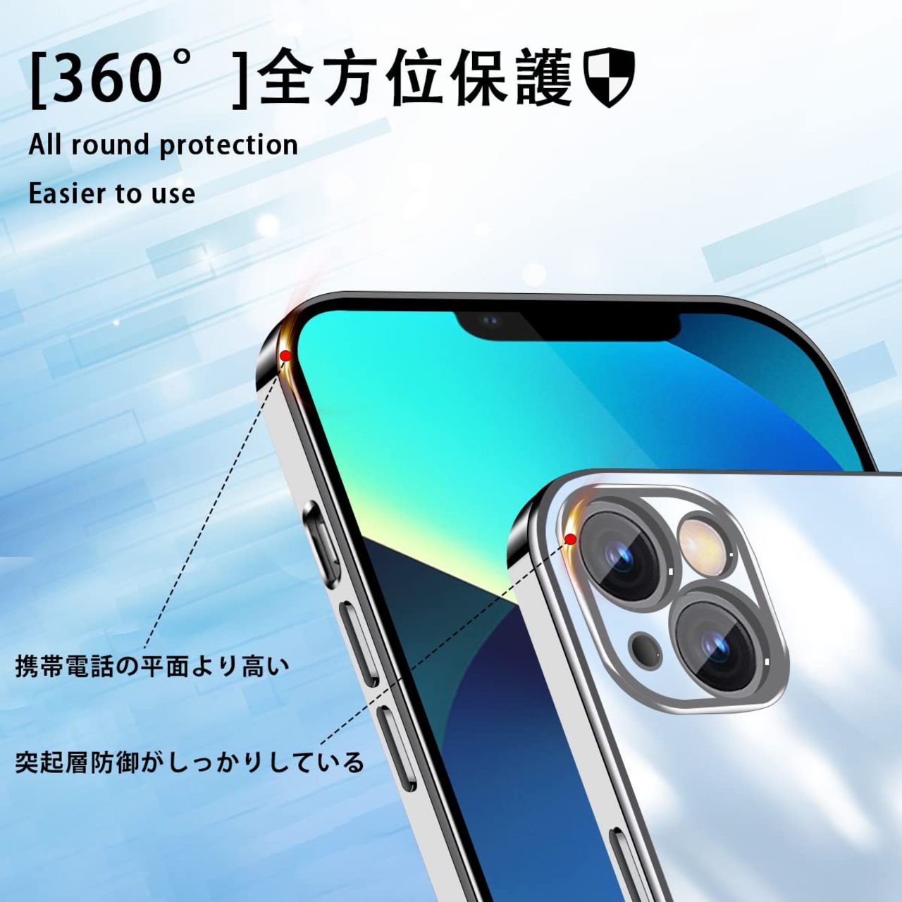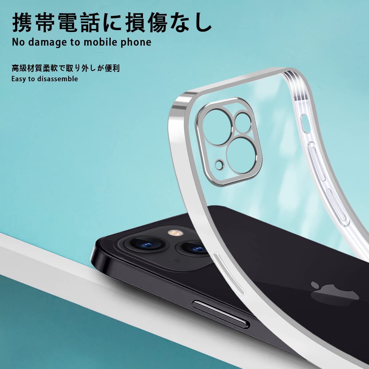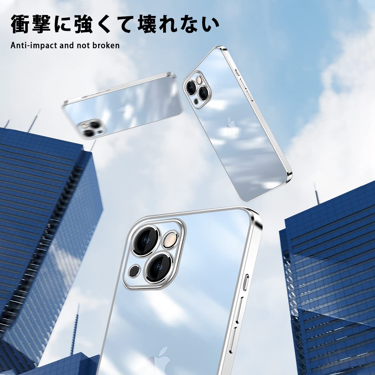 iPhone 13 ケース 耐衝撃 軽量 アイフォン13 スマホケース 背面クリア 周りメッキ加工 TPU 米軍規格 保護カバー 落下防止 ストラップホール付き ワイヤレス充電 防塵 一体型(シルバー)