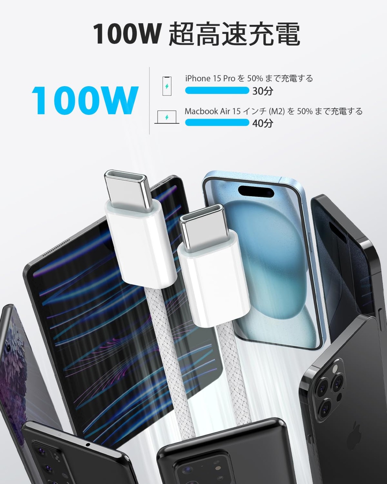 USB Type C 充電ケーブル 3本 1M Type-C to Type-C PD対応 iPhone 15 充電ケーブル 100w/5A 急速充電 高速データ転送 高耐久 断線防止Galaxy/MacBook Pro/iPhone 16/15 /Android等Type-c機種対応