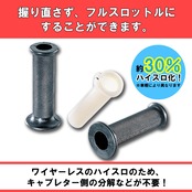 ノーマルと比ベケーブルの巻き取り径が大きくなるため、スピーディーにフルスロットルまで開ける事が可能、握り直しの必要が無くなります