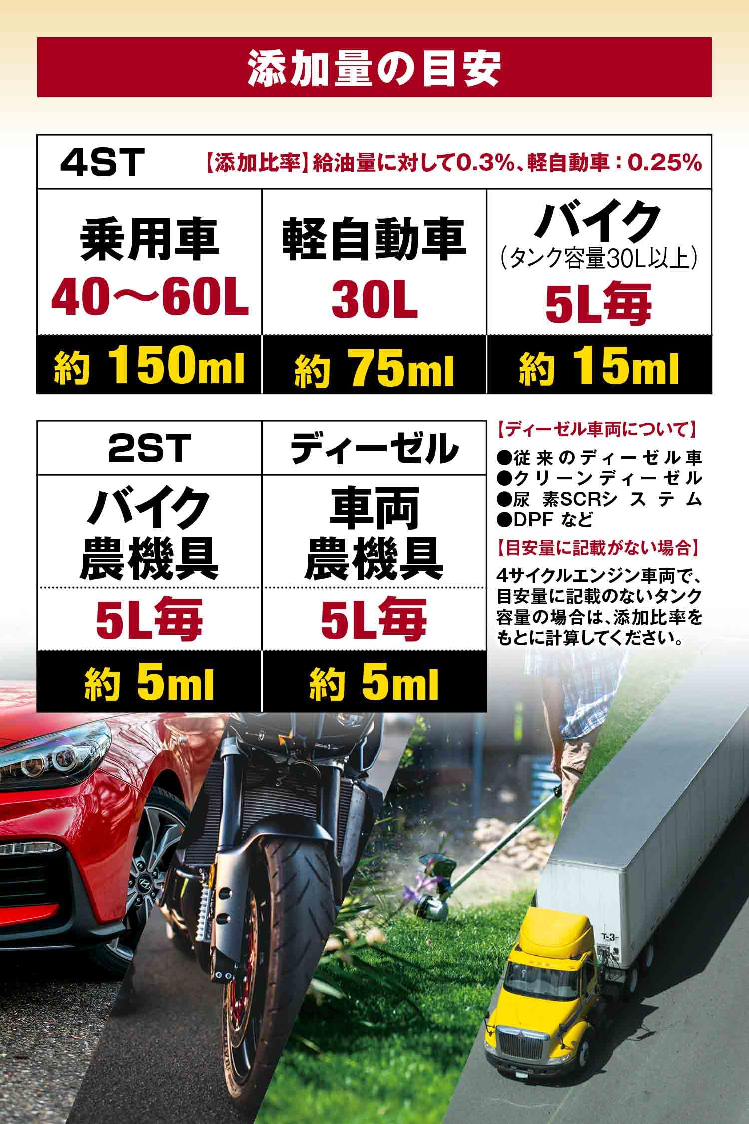 【ご注意】タンク容量が30L未満に使用する場合は0.25%以上添加しないで下さい。