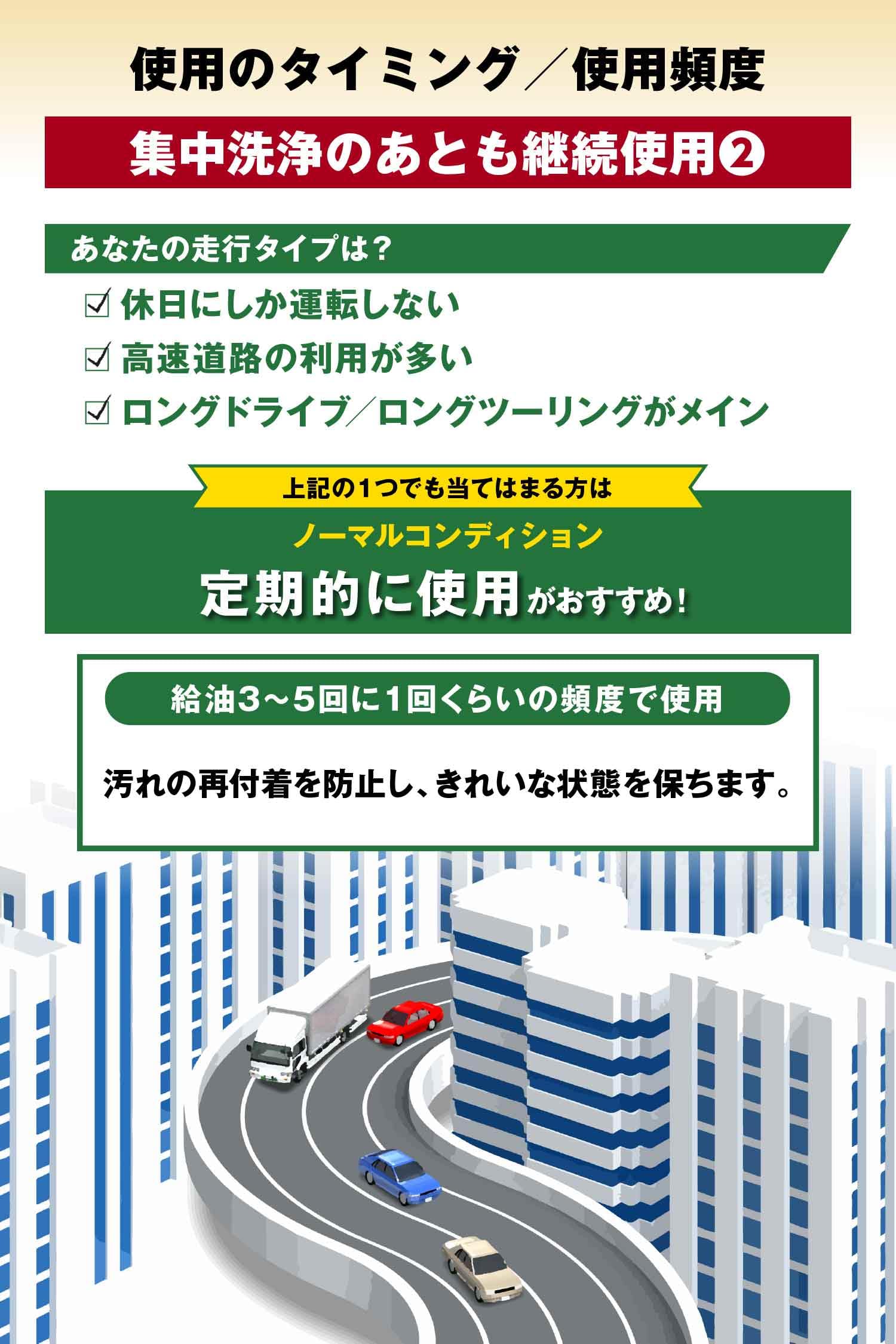 走行距離が長い場合や、年数が経過している場合、2~3回連続してご使用いただくことで、より効果が増します。
