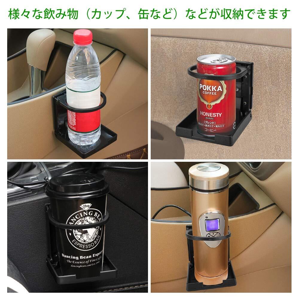 ZADAFINA 車ドリンクホルダー 折りたたみ式 2個セット カップホルダー ペットボトル 水筒 カップ 取り付け 自動車 調節可能 車 トラック ボート バンに適用 ブラック