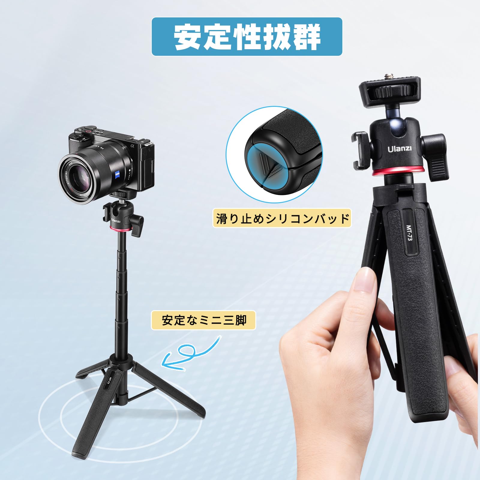 【特価セール】Ulanzi MT-73 ミニカメラ三脚 4段伸縮 自撮り棒 コールドシュー付き 卓上三脚 360度自由雲台 スマホ三脚 1/4ネジ穴 持ち運び便利 vlog ビデオ セルカ棒 ストラップ付き Sony/Canon/Nikon/Android/iPhone/アクションカメラなどに対応 | ニコニコSHOP