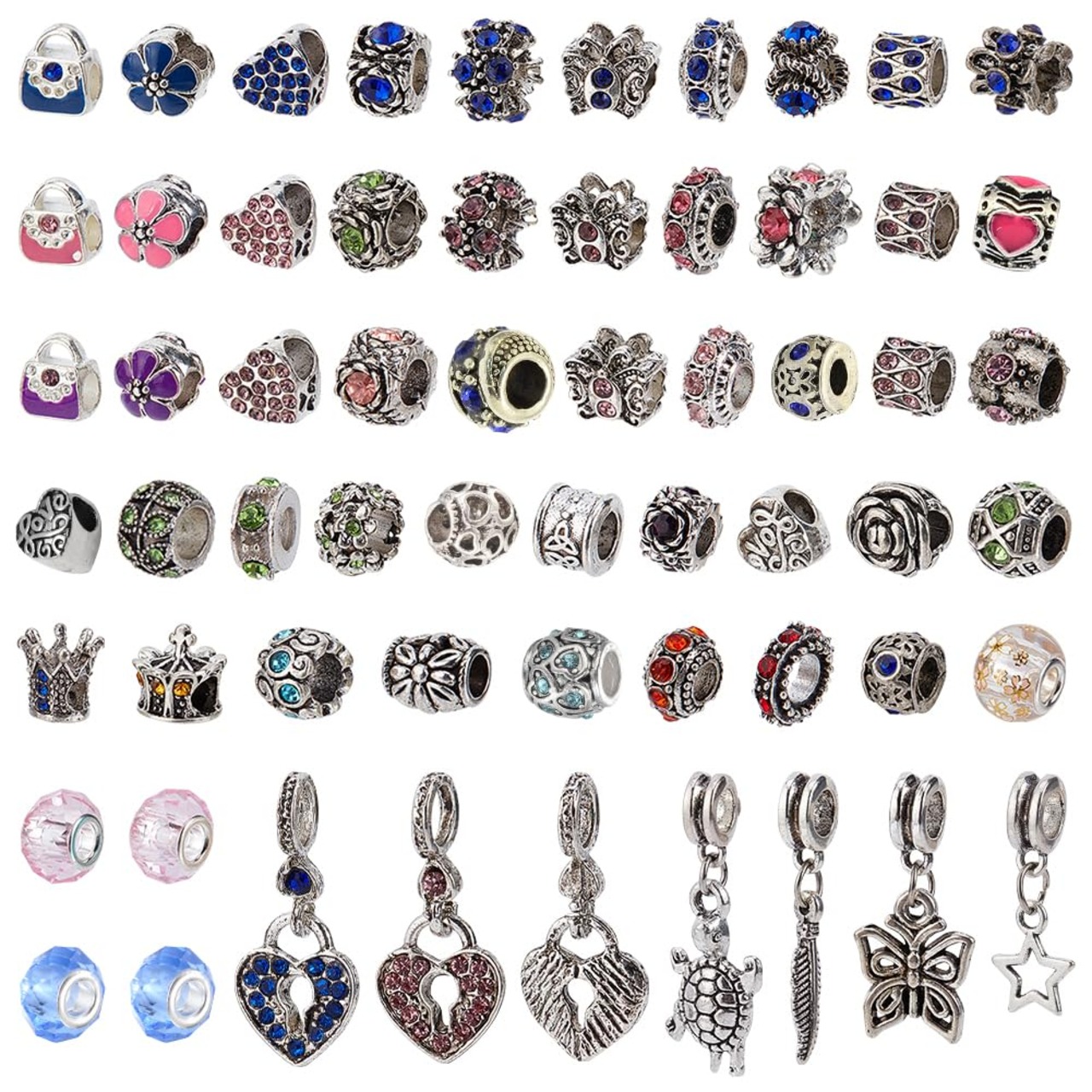 【数量限定】[PH PandaHall] 約60個セット ヨーロピアン スタイル ビーズ 大穴ビーズ 動物 チャーム ラインストーン ブレスレット ネックレス ジュエリー用 合金 混合色 10~27x5~14x8~11mm | ニコニコSHOP