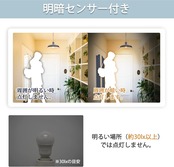 【明暗センサー】周りの照度が30lx以上の環境では点灯しませんので、暗い場所(30lx以下)でご使用ください。照度に迷った場合、商品ページの画像に照度30lxの目安をご参考ください。