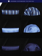 【 セット内容 】ネクタイ 3本 +ポケットチーフ 3本、HISDERNブランド専用ボックスが付きます。 商品サイズ:ネクタイ 幅8.5cm / 長さ150cm | ポケットチーフ: 31cm*31cm。