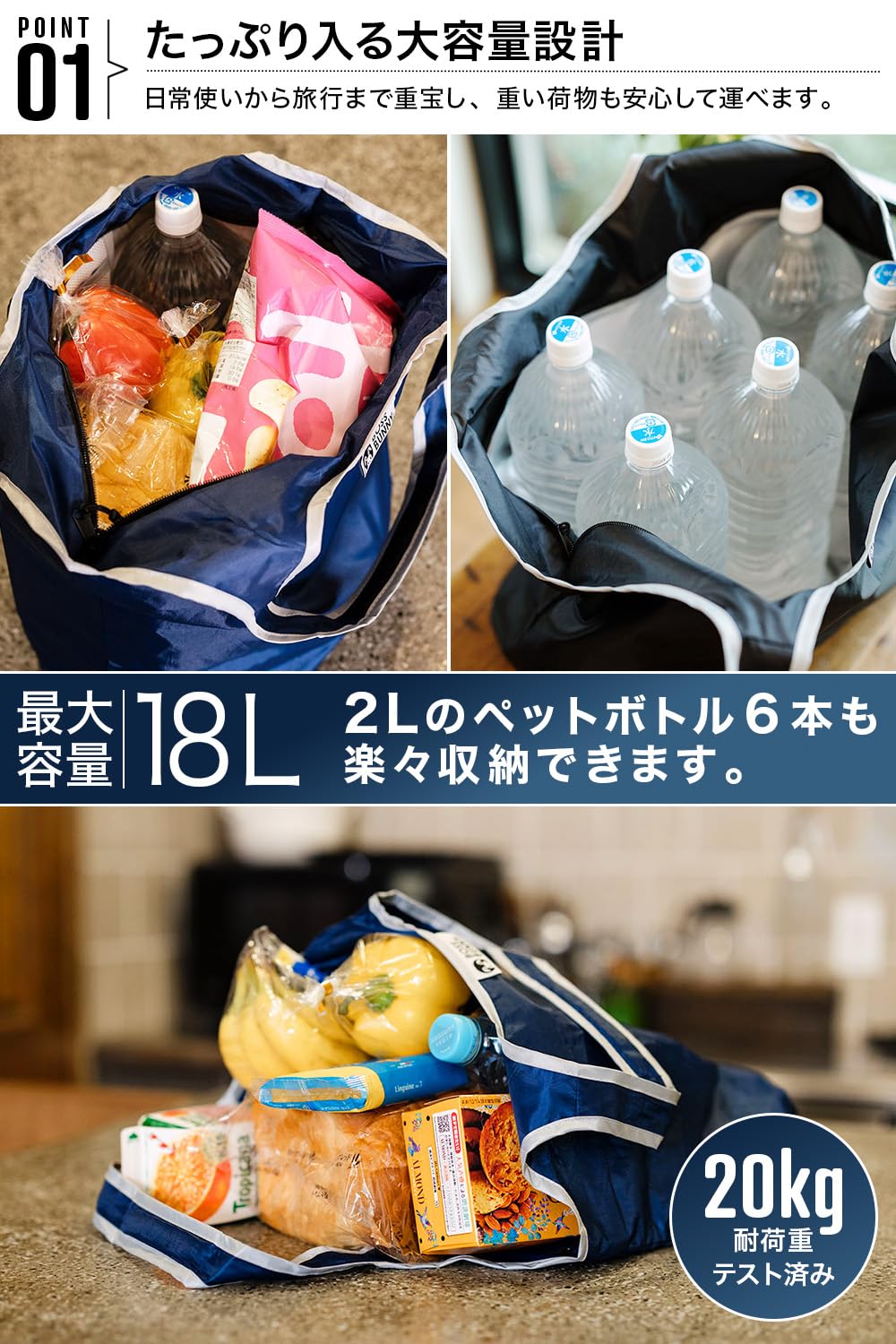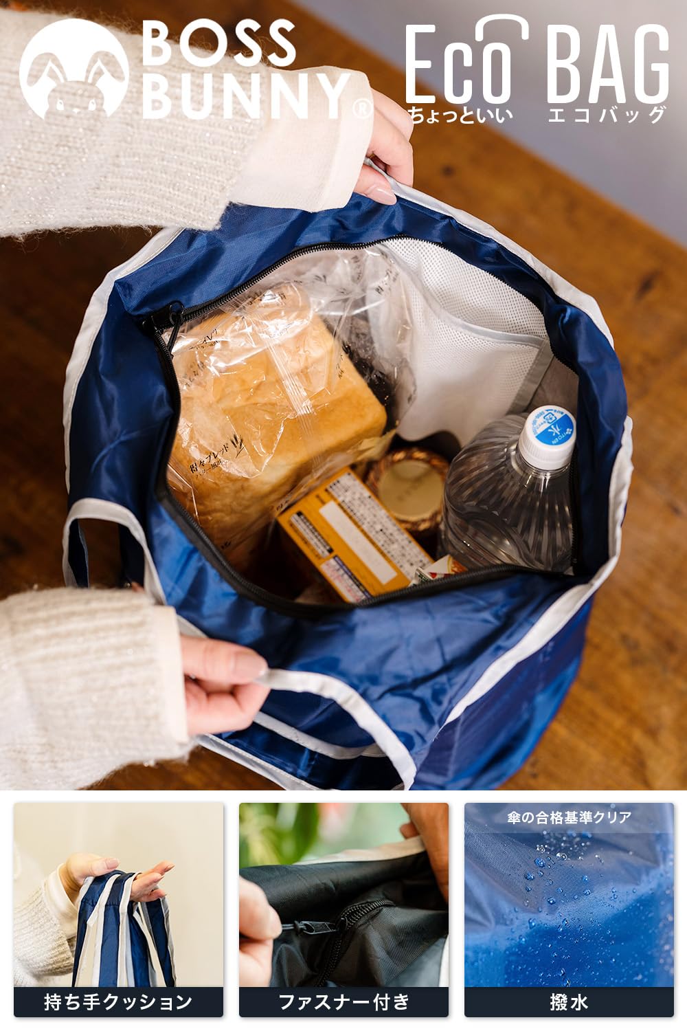 【新春セール】[BOSSBUNNY] ちょっといい エコバッグ 折りたたみ 大容量 丈夫 保冷 保温 撥水 国内企画 買い物バッグ トートバッグ 男性 女性 メンズ レディース ショルダー 肩掛け マチ付き ファスナー付き 肩から滑り落ちにくい 持ち手クッション付き | ニコニコSHOP