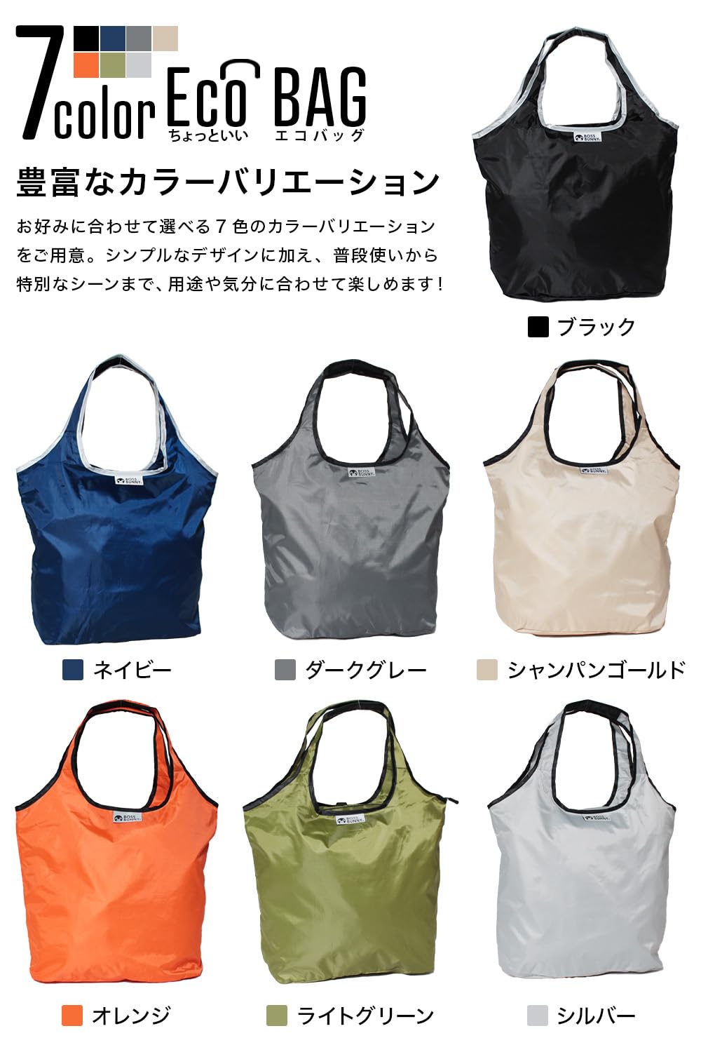 [BOSSBUNNY] ちょっといい エコバッグ 折りたたみ 大容量 丈夫 保冷 保温 撥水 国内企画 買い物バッグ トートバッグ 男性 女性 メンズ レディース ショルダー 肩掛け マチ付き ファスナー付き 肩から滑り落ちにくい 持ち手クッション付き