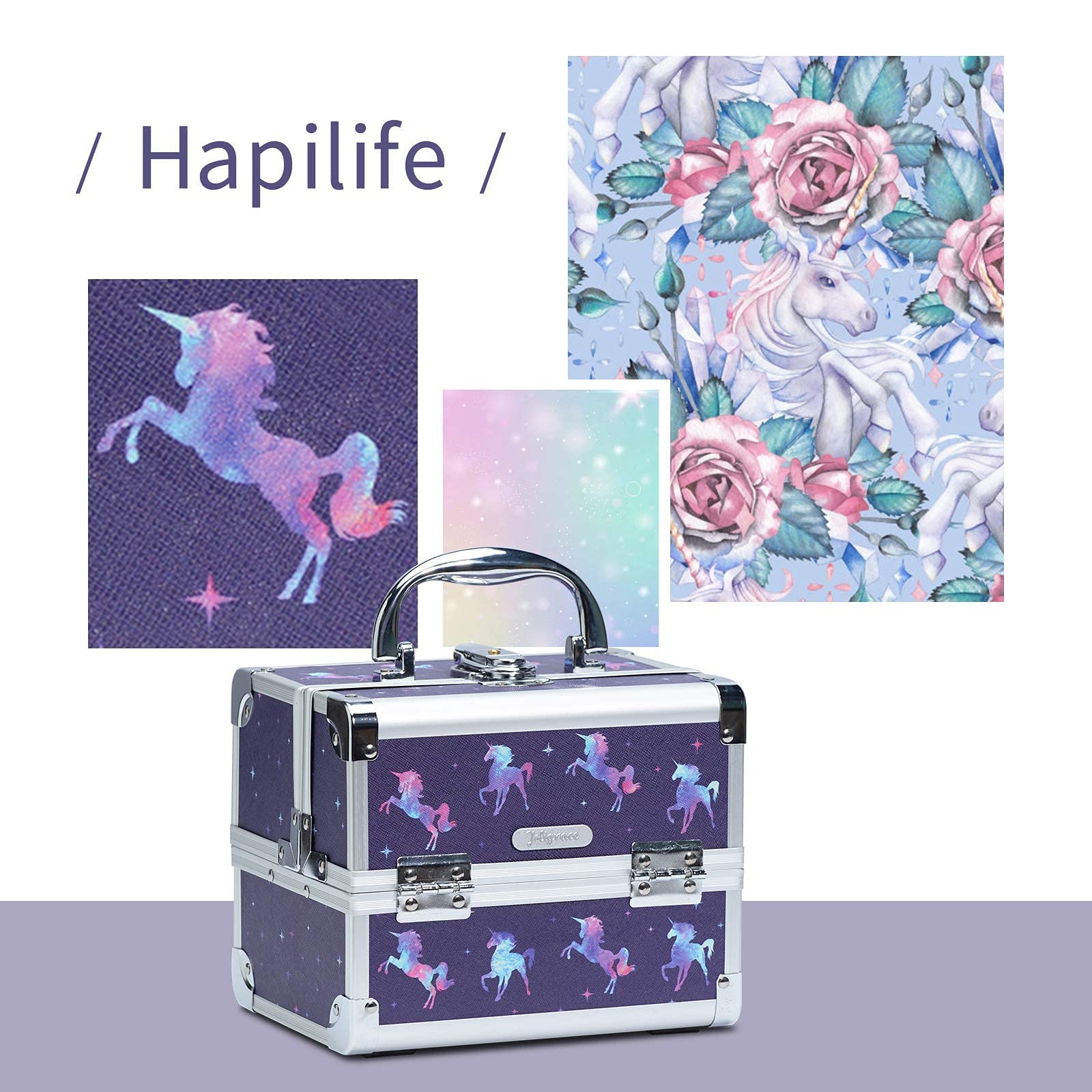 Hapilife メイク ボックス 化粧箱 コスメ 化粧品 収納 ミラー付 鏡付 鍵付 大容量 ユニコーン 3段式 幅20cm パープル プレゼント