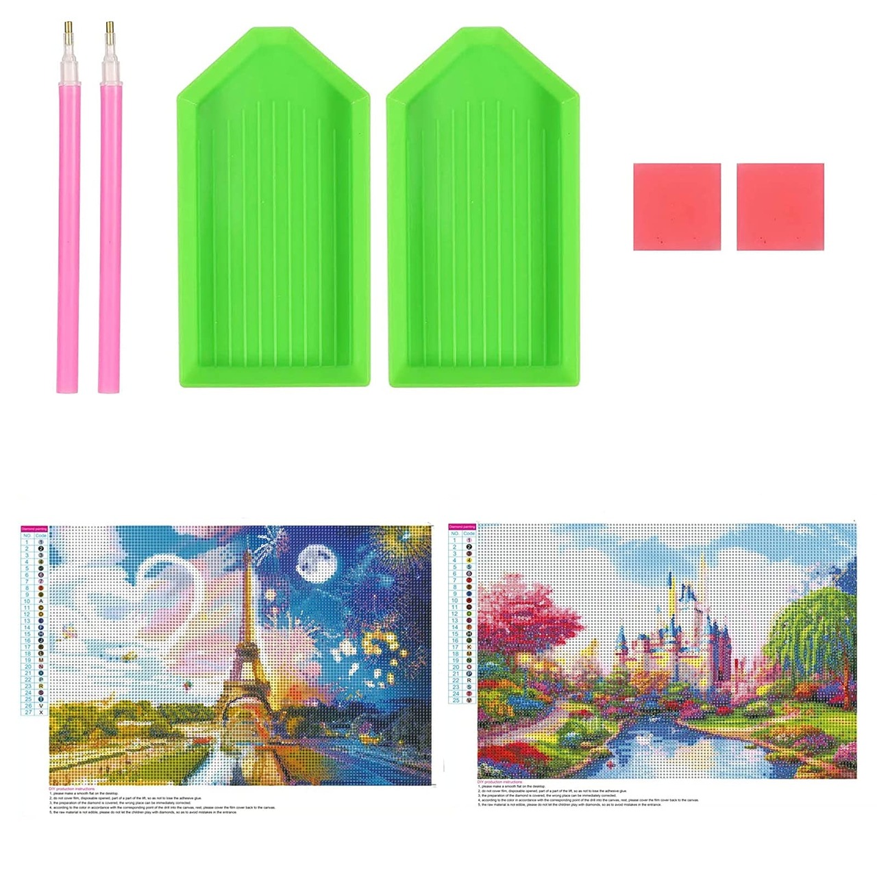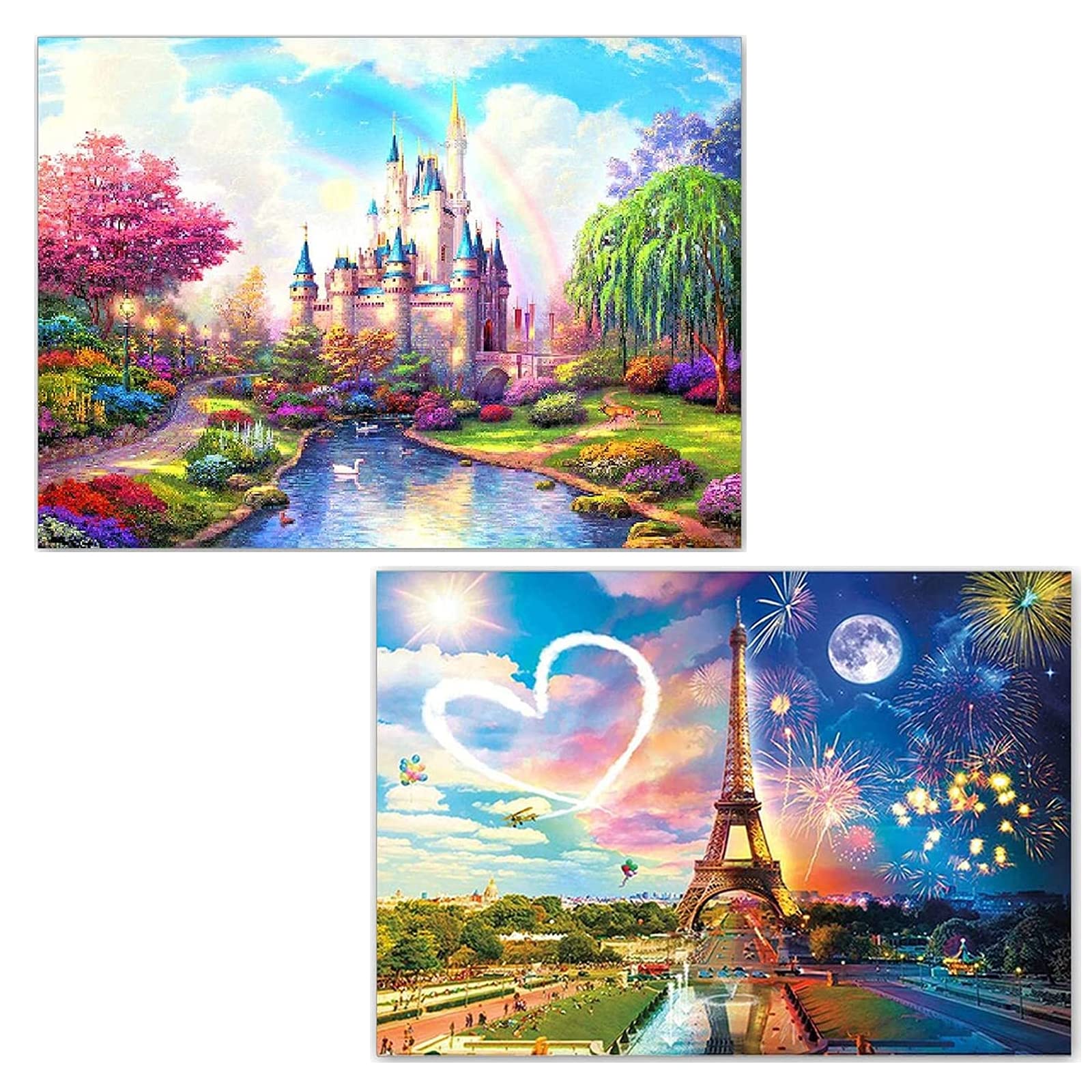 2枚セット 5Dダイヤモンドアート キット ダイアモンドビーズ絵画キット DIY・手作り絵画手芸キット 5D モザイクアート ハンドメイド かわいい 芸術品 装飾 ダイヤモンド塗装 全面貼り付けタイプ 30x40cm(城と塔)