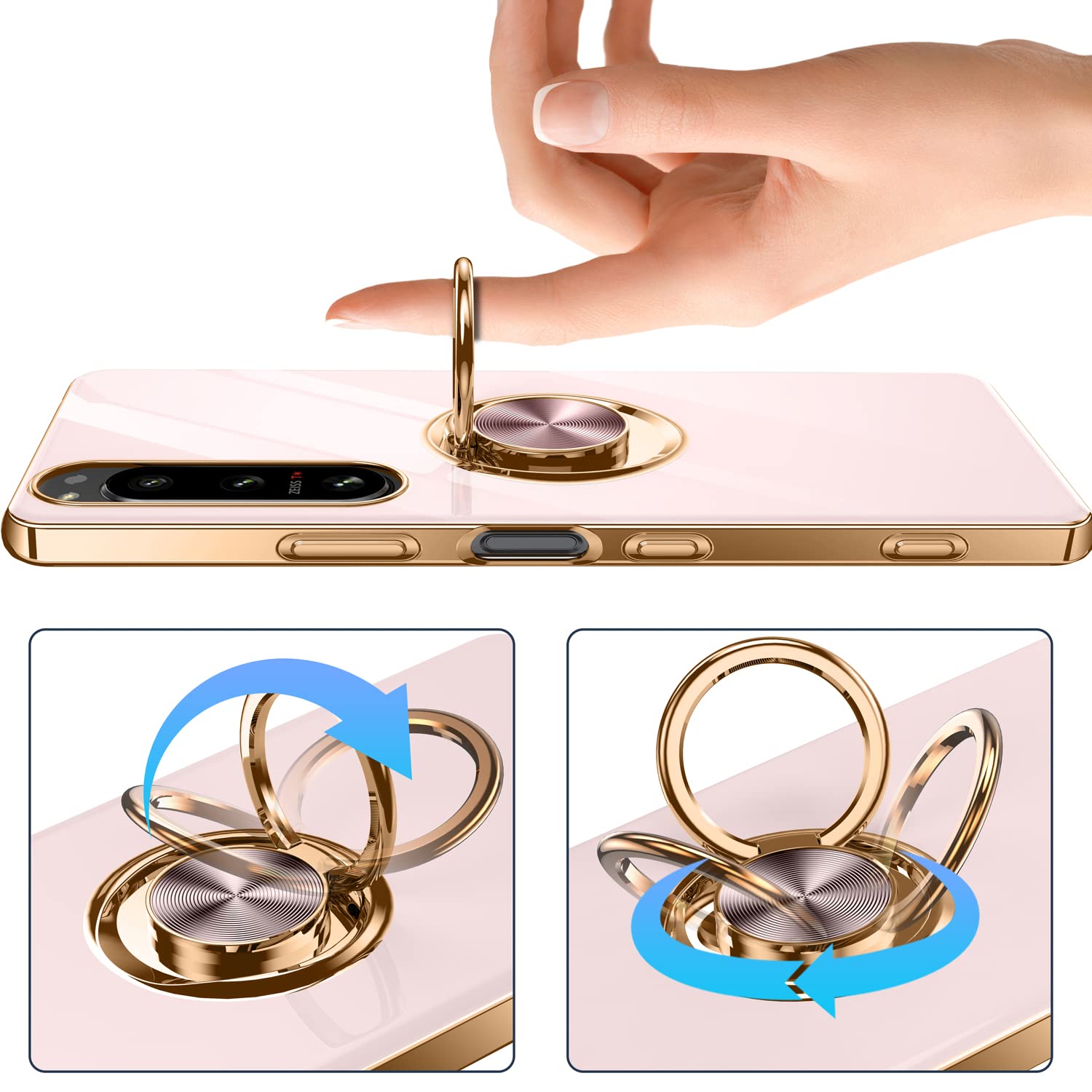 「リング付き・スタンド機能」360°回転できるこのリングは、テーブルに置くだけスタンドに変わり、ちょうど良くスマホをしっかりホールドし、普段は指輪としても活用、不意に落ちる心配もありません。