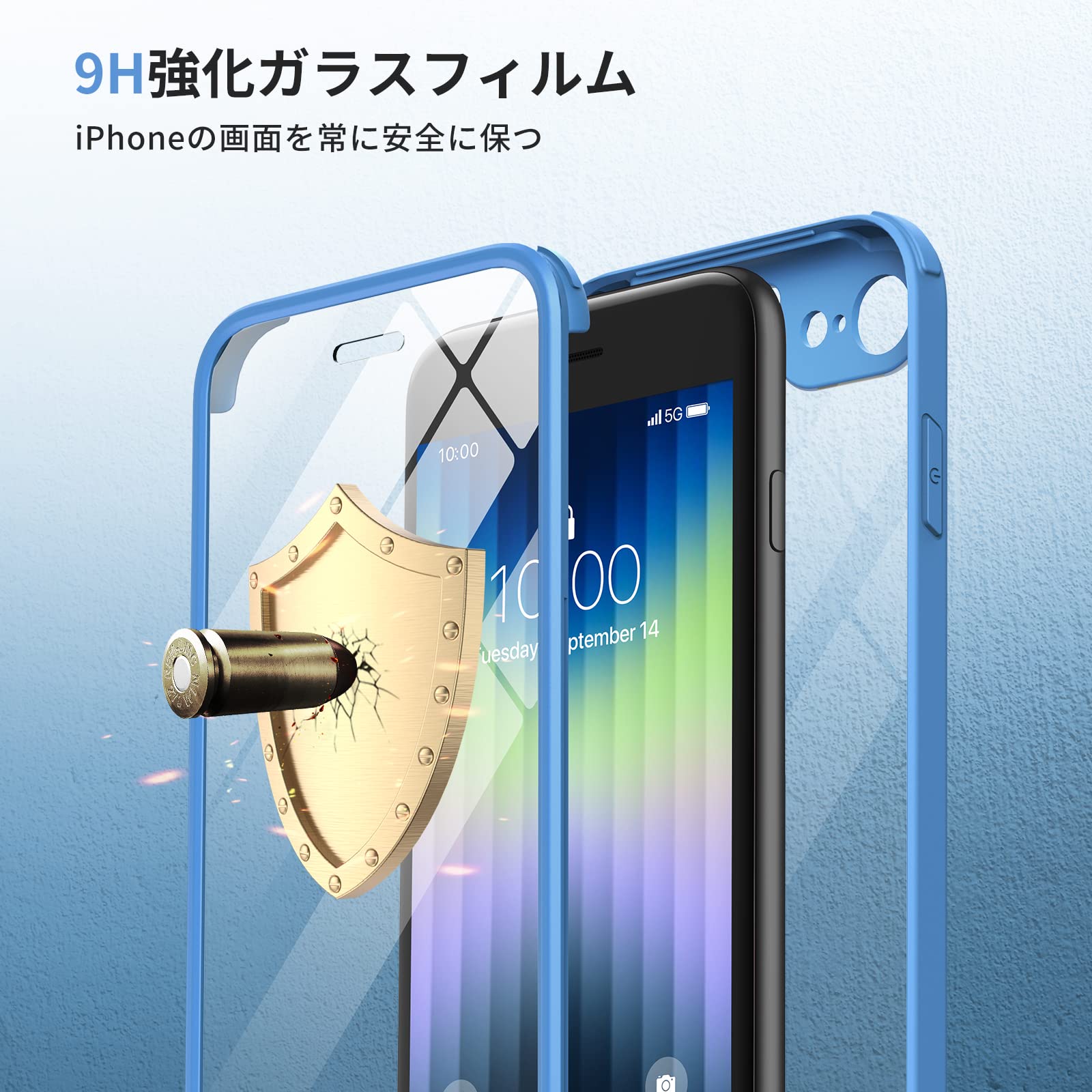 【360°保護】9H硬度ガラス+TPUフレーム+背面PCパネルと組み合わせの三層構造、透明なリアプレートはあいふぉんSE第3世代本体背面のオリジナルカラーを表示すると同時に傷や衝撃などから守ります。