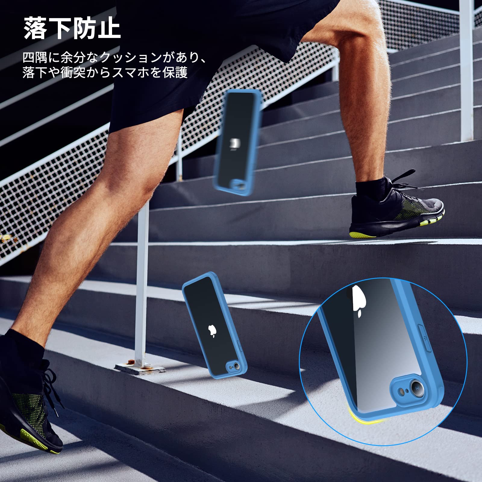 【耐衝撃TPU】ソフトな衝撃吸収性TPUバンパーにより、360°フルボディの頑丈なプロテクションをスマホに提供、iPhone SE3 用 スマホケースの四角を強化し、落下時の衝撃を軽減します。盛り上がったエッジは、落下やその他の衝撃から画面とカメラを保護します。