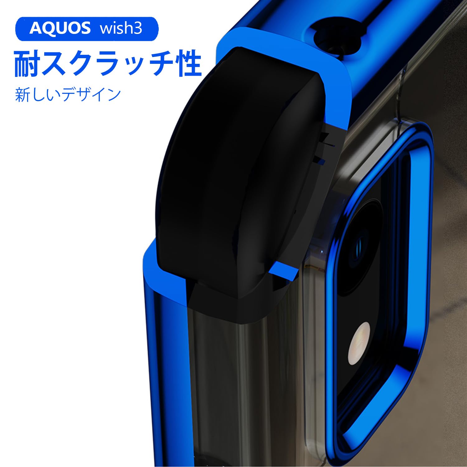 【新着商品】AQUOS wish3用 ケース SH-53D SH-M25カバー透明TPU 耐衝撃 青メッキ加工 リング ストラップホール付き スタンド機能 車載ホルダー対応 滑り止め 落下防止 シャープ wish3 バンパー(ブルー 1枚セット) | ニコニコSHOP