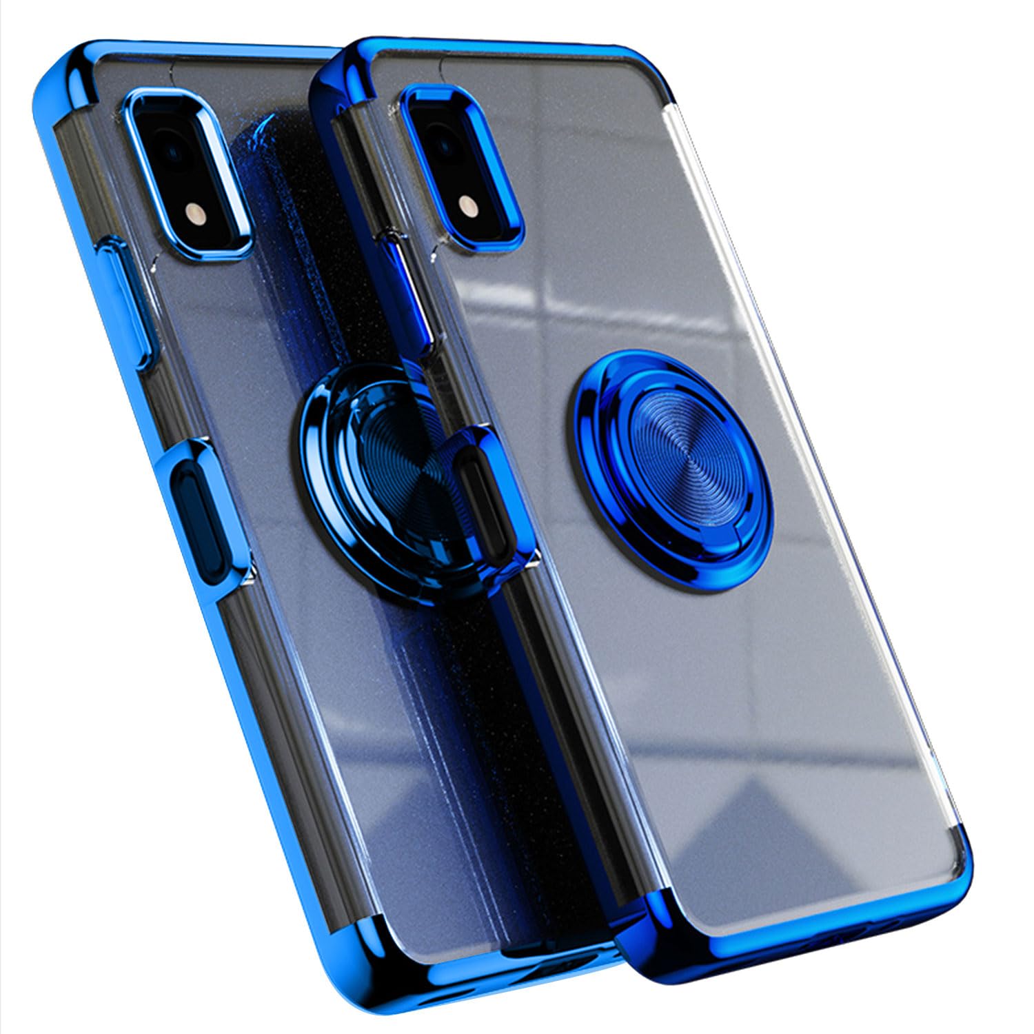 AQUOS wish3用 ケース SH-53D SH-M25カバー透明TPU 耐衝撃 青メッキ加工 リング ストラップホール付き スタンド機能 車載ホルダー対応 滑り止め 落下防止 シャープ wish3 バンパー(ブルー 1枚セット)