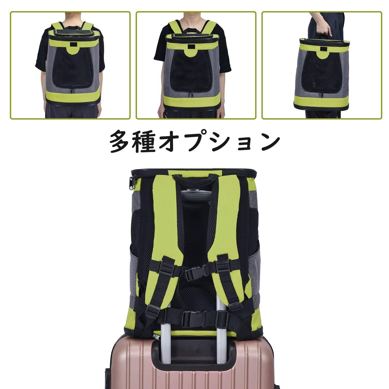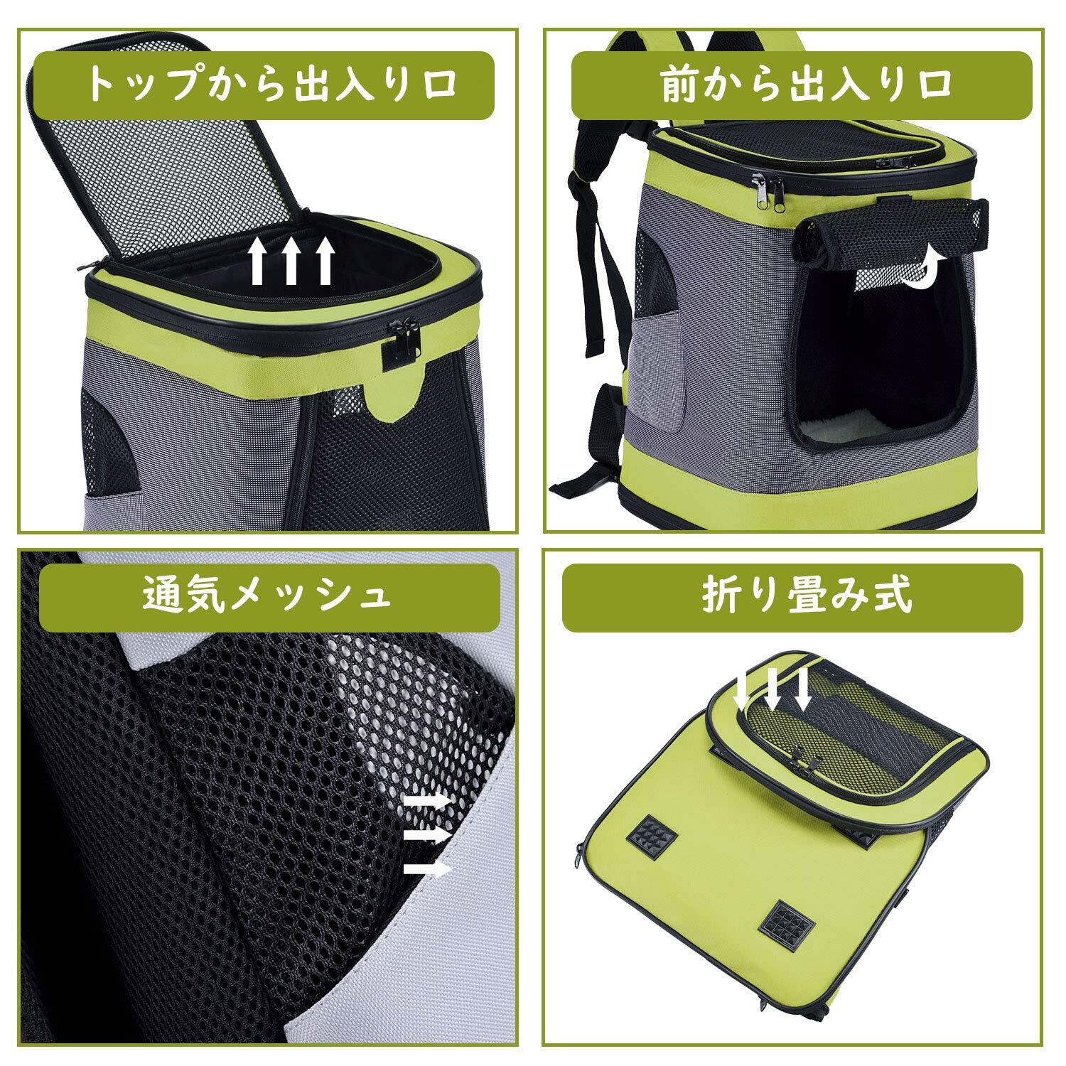 Pettom 猫 きゃりーバッグ リュック 犬 ペットキャリーリュック 猫 可愛い 通気 ペットリュック 崩れないタイプ (グリーン)