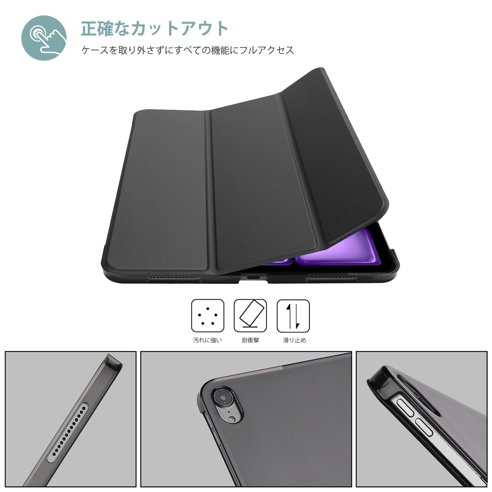 半透明のつや消し背面カバーは、耐衝撃で指紋や傷から保護しながら、iPad本来の美しさをそのまま活かせます。