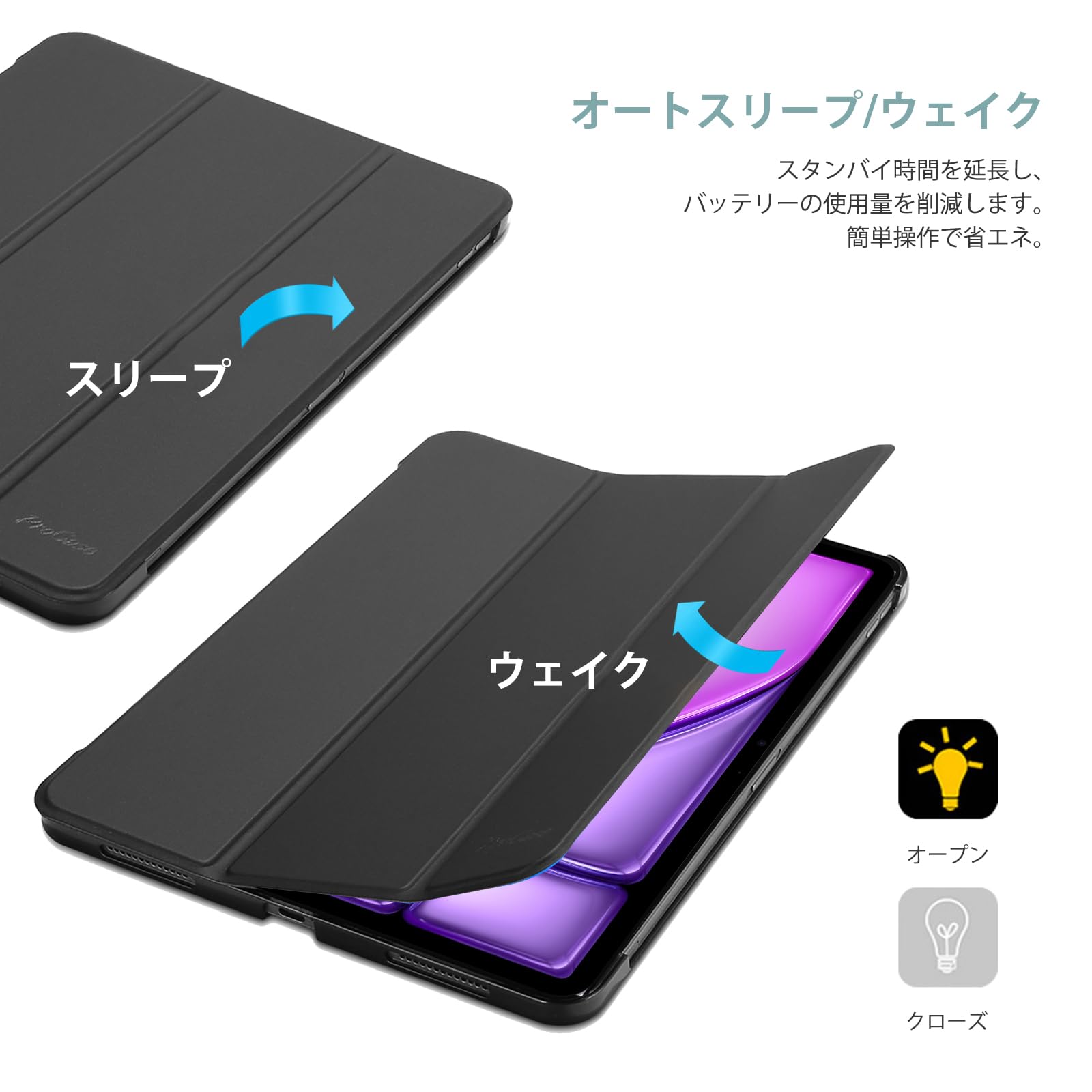 【新着商品】ProCase iPad Air 11インチ ケース M3 (2025) / M2 (2024) / iPad Air 第5世代 / 第4世代 軽量 スタンド 三つ折り フォリオ保護ケース 半透明バックカバー Apple Pencil 2対応 対応端末:iPad air 11インチ M3 (2025)、M2 (2024)、iPad Air5 2022、Air4 2020 - ブラック | ニコニコSHOP