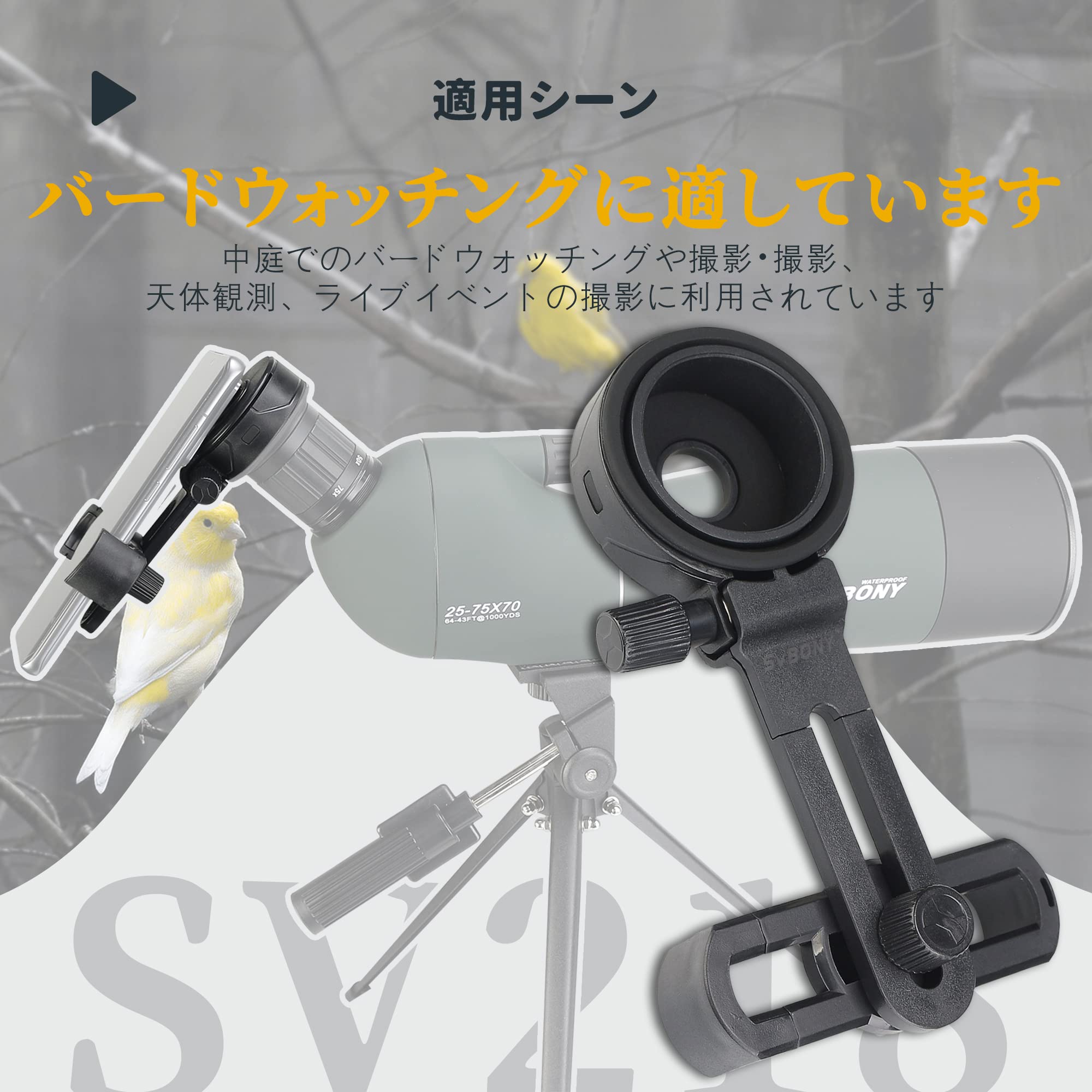 【数量限定】SVBONY SV218 携帯電話アダプターマウント ユニバーサル携帯用のアダプタマウント マウントアダプタホルダー 接眼レンズ直径38.5-49.3mm 金属 軽量 フィールドスコープや望遠鏡や天体望遠鏡や単眼鏡や双眼鏡などに利用でき | ニコニコSHOP