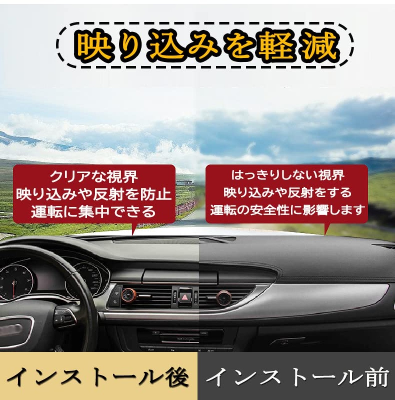 【映り込み防止】ダッシュボードマットがフロントガラスへの映り込みを大幅軽減し、運転による疲労感を和らげます。クリアな視界でストレスの少ないドライブを体感頂けます。ダッシュマットを装着することで紫外線からダッシュボードを守り、ホコリや汚れ、傷が付くことも防ぎます。