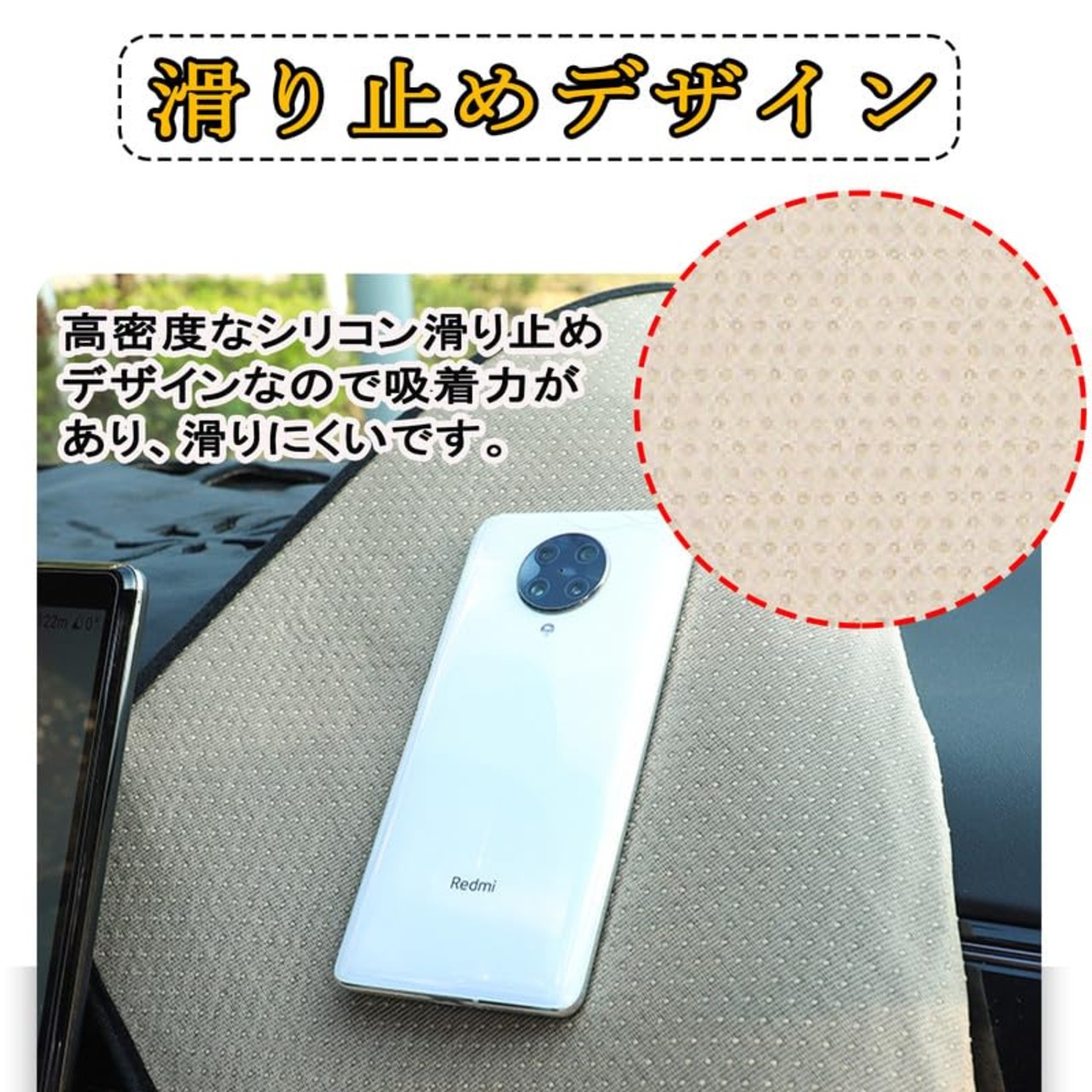 【高品質な素材】上質なスエード素材です、優れた吸熱能力を持っています。材質は丈夫で、変形しにくいです。また、裏面は高密度なシリコン滑り止めデザインなので吸着力があり、ズレたりしません。予備のマジックテープも付きますので、ダッシュボードに置いて位置を調整して初心者でも簡単に取り付けできます。