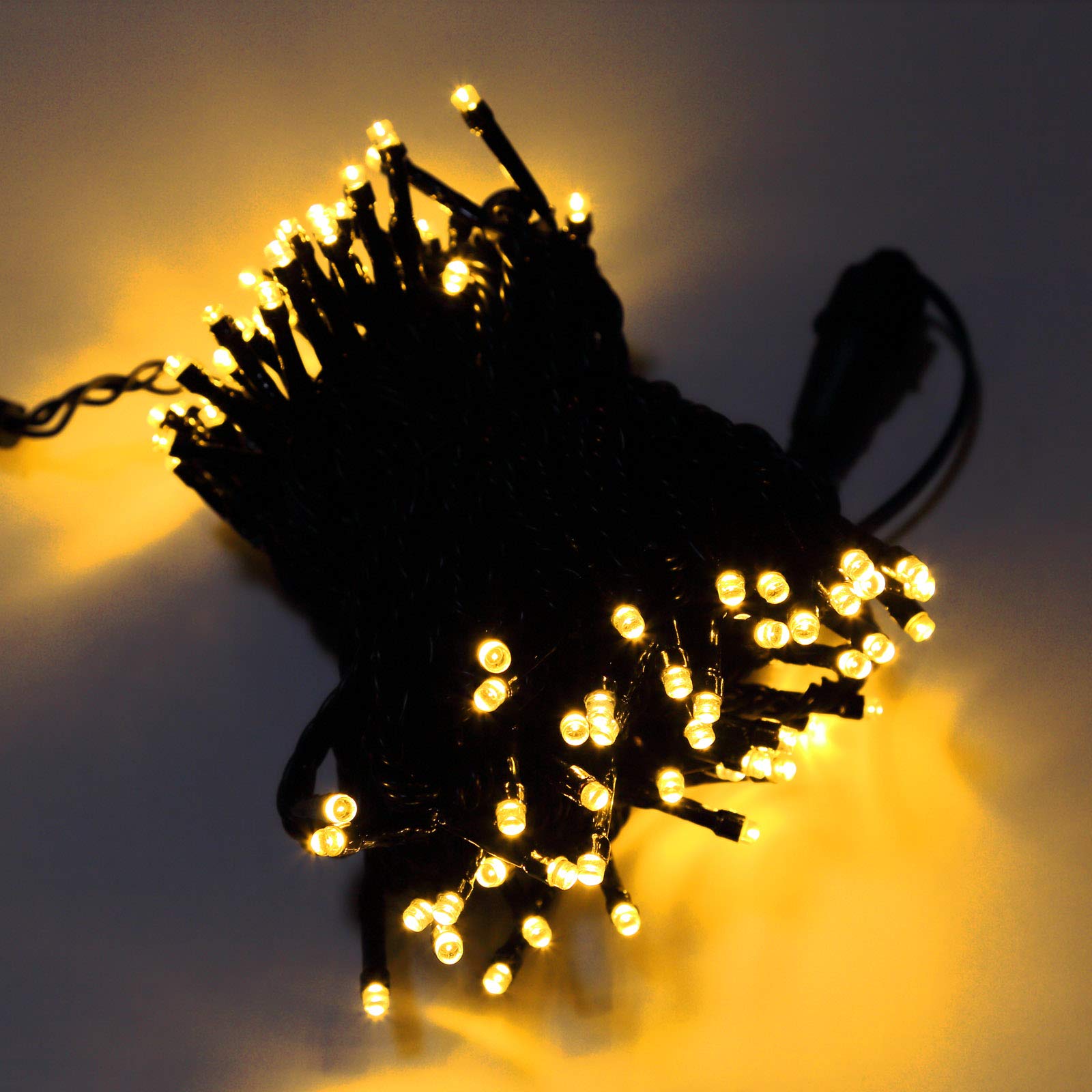 【業務用 高耐久】屋外用LEDイルミネーション 防水 防雨型 ストレート 10m 100球 電球色(ゴールド)