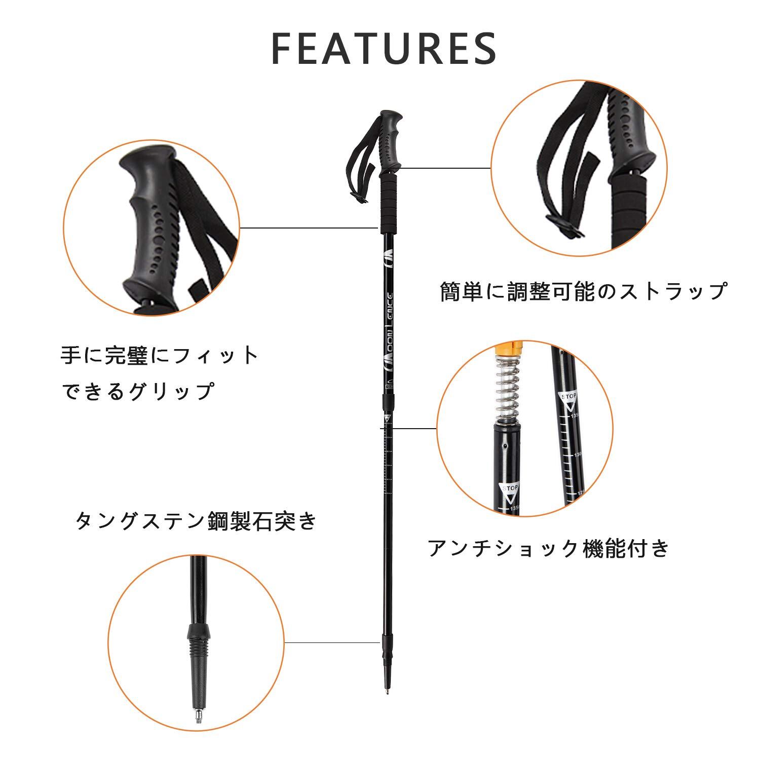 Moon Lence トレッキングポール 超軽量 コンパクト 3段伸縮 アルミ製 2本セット アンチショック機能付き ウォーキング ハイキング 登山用 収納バッグ&付属品付き