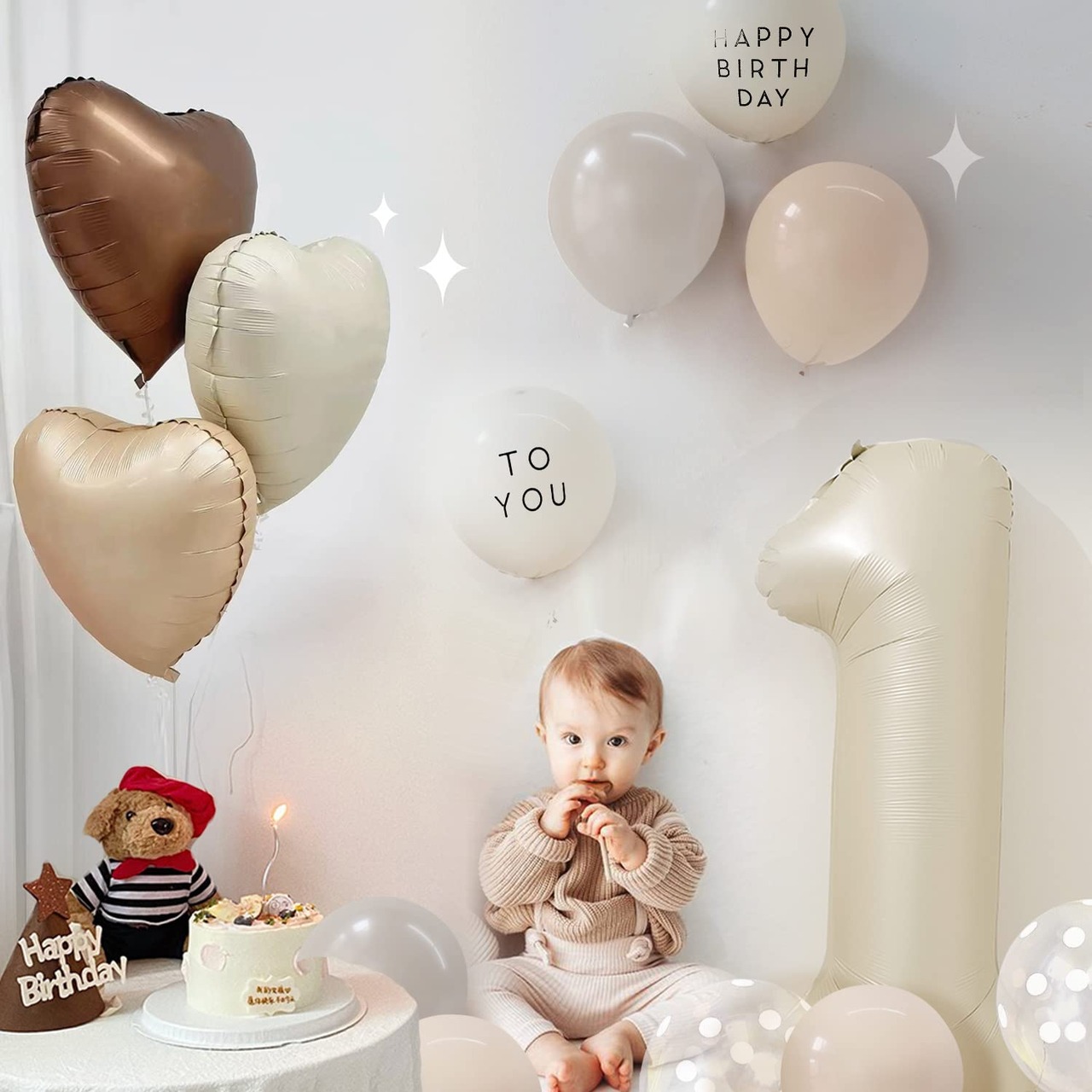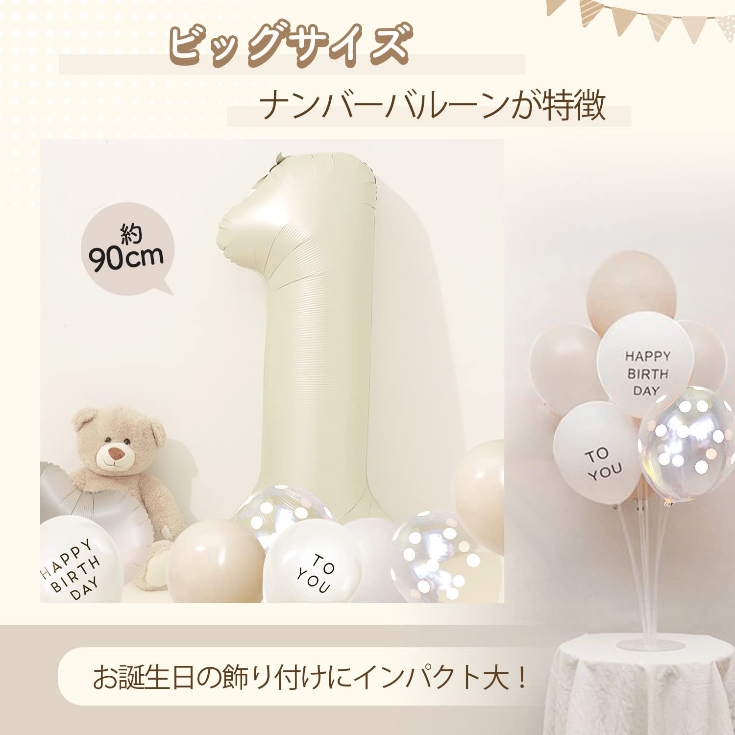 【優しい色合いの誕生日風船セット】落ち着いた渋めのクリーム色で、子供の誕生日にさりげなく飾ってもおしゃれです。 食器とコーディネートして、パーティーテーブルの周りを飾り付けても素敵。一才児が気に入るで赤ちゃん向け、誕生日パーティーのムードを盛り上げます。
