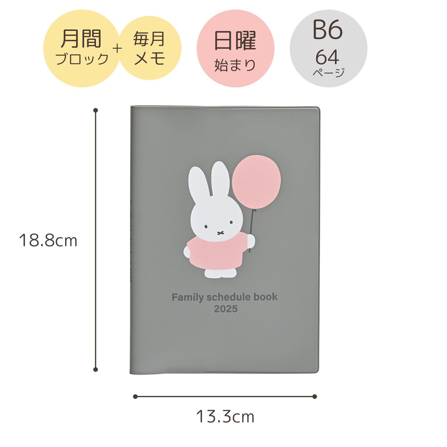 クツワ 手帳 ミッフィー 家族手帳 2025年 B6 マンスリー 風船 MF865F 2024年 12月始まり