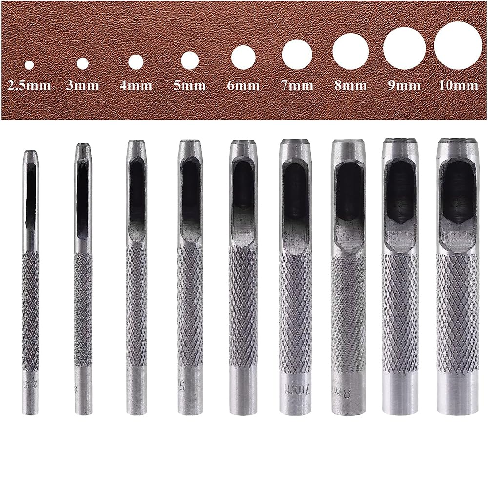 BTtime 穴あけポンチ (2.5mm 3mm 4mm 5mm 6mm 7mm 8mm 9mm 10mm) 9本セット 丸形 打ち抜きポンチ レザークラフト DIY 穴あけ道具