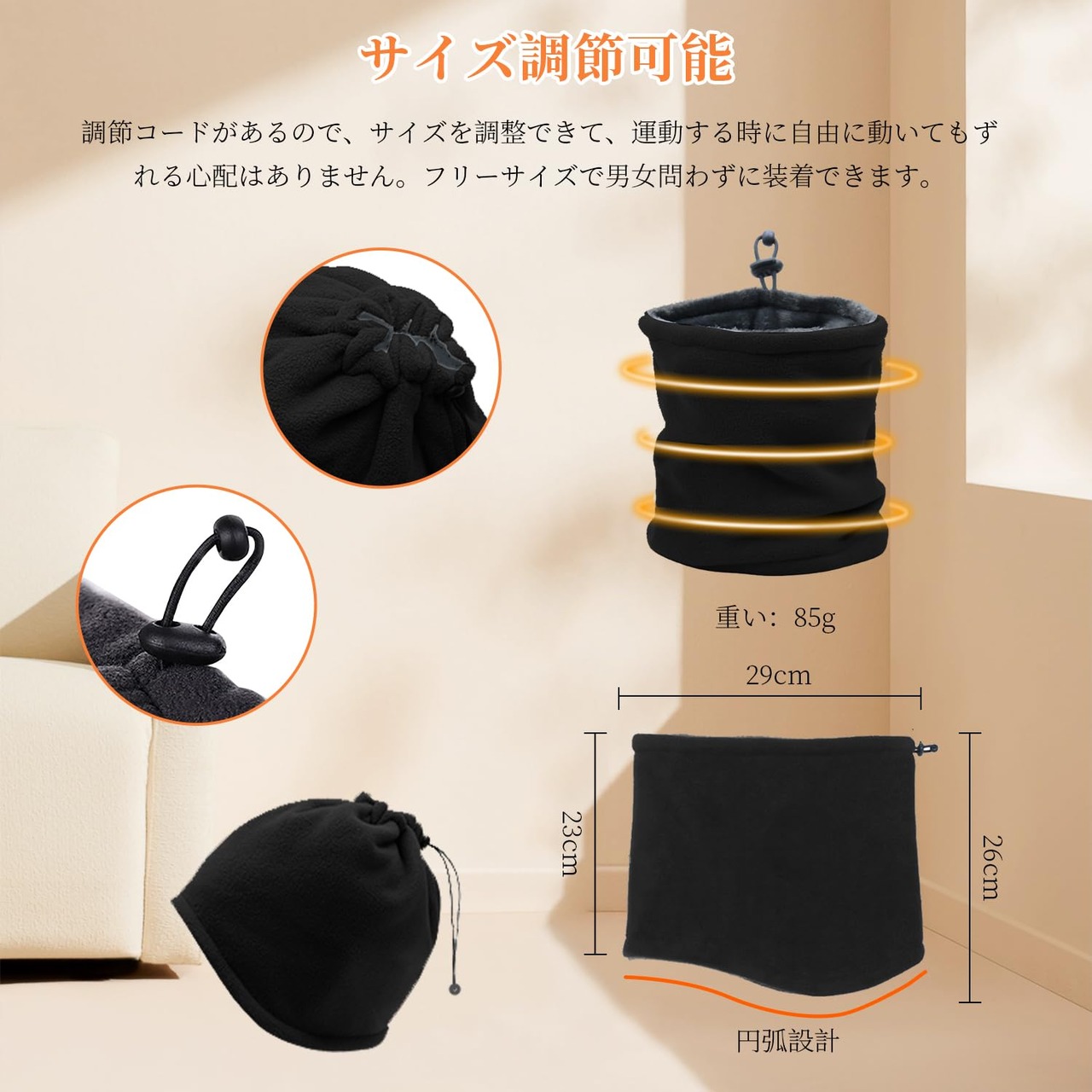 【多機能ネックガード・調節コードつき】サイズ: 縦26cm・横29cm。ネックガード(ネックウォーマー)、フェイスガード(フェイスウォーマー)、帽子として使用できます。シンプルなデザインで、いろいろな服に合わせやすくて、もっとファッション感を増やします。束縛がなくて、顔を締めつけません。調節コードがあるので、サイズを調整できて、運動する時に自由に動いてもずれる心配はありません。フリーサイズで男女問わずに装着できます。おしゃれな着こなしに日常の装飾を組み合わせると、寒い冬はあなたの魅力を阻むことができません。