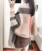 【動くたび、表情豊かに。】シンプルなデザインのストール風カーディガンも、バイカラーでぐっと華やかな印象に◎