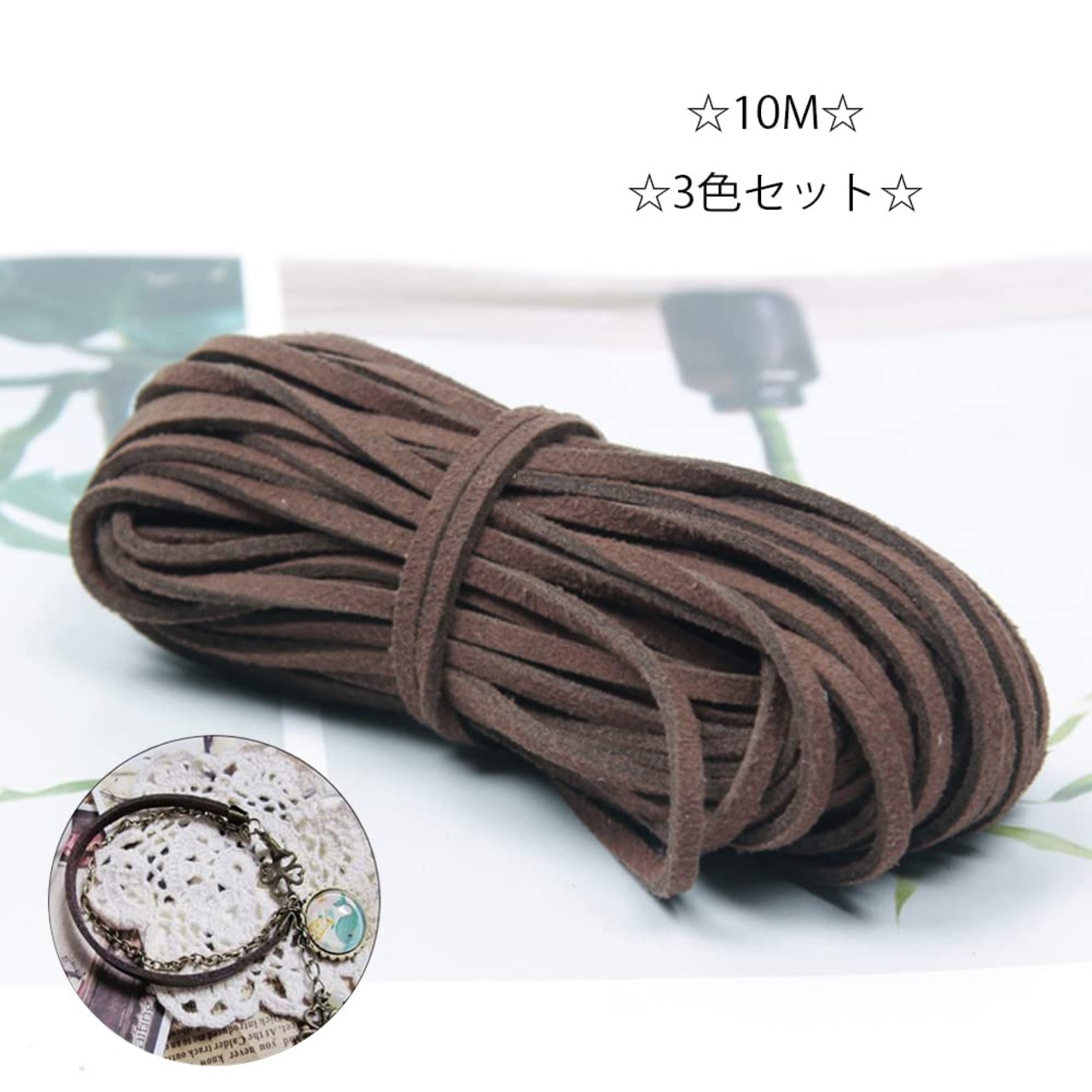 サムコス レザー 紐 スエード 革ひも 革紐 ネックレス ブレスレット レザークラフト 手芸材料 DIY ハンドメイド アクセサリーパーツ 10M (3色)