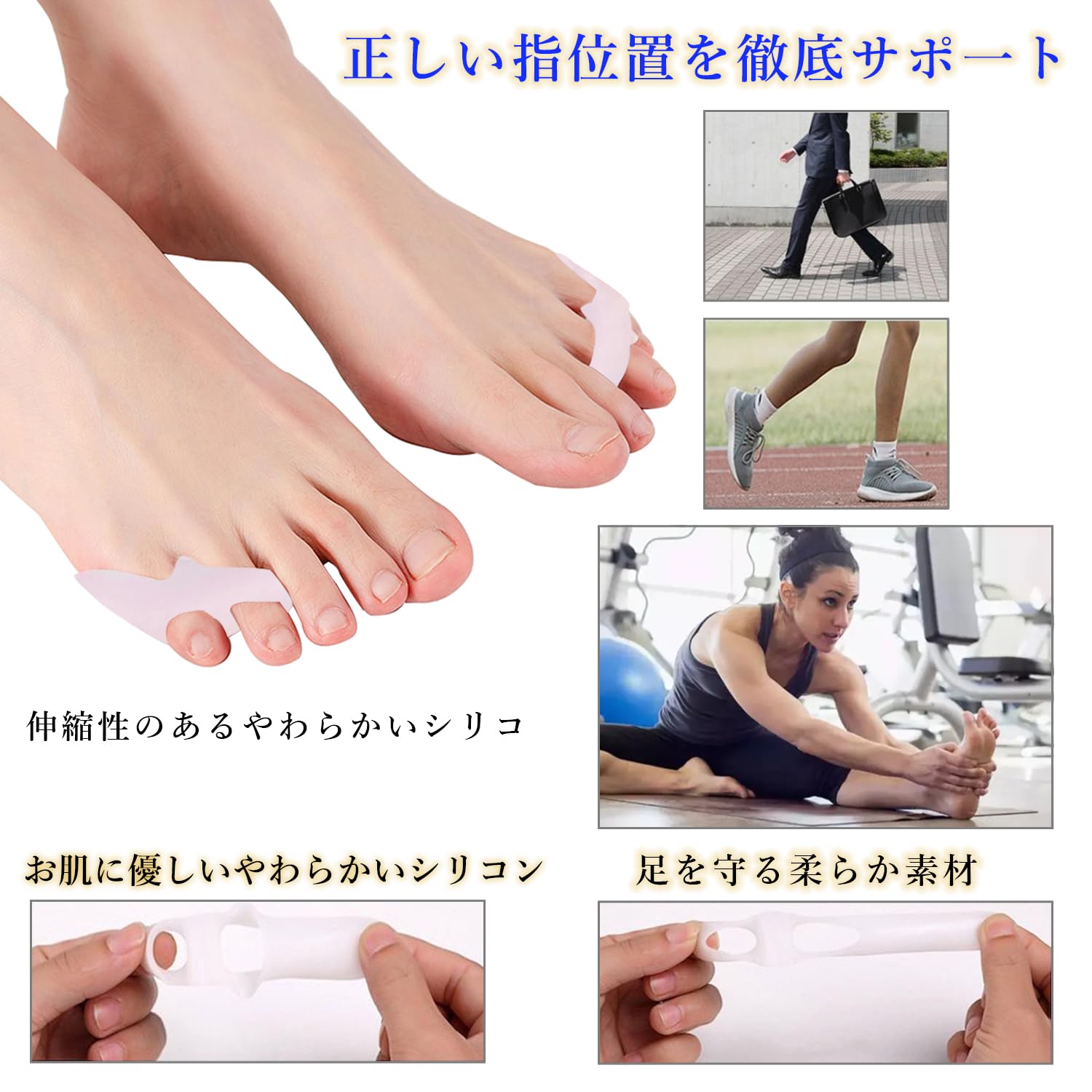足指サポーター 足指広げる パカッと広げる 水洗い可能 簡単着脱 男女 左右兼用 (2足組)