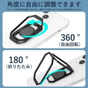 【在庫処分】スマホリング 携帯リング リング ホルダー 折りたたみ式 スタンド機能 360°回転 薄型 滑り止め コンパクト耐久性 貼り替え可能 落下防止 粘着テープ式しっかり固定式 バンカーリング 携帯電話 iPhone/Android/switch/kindle/ipadタブレット など各種機器対応(ブラック) | ニコニコSHOP