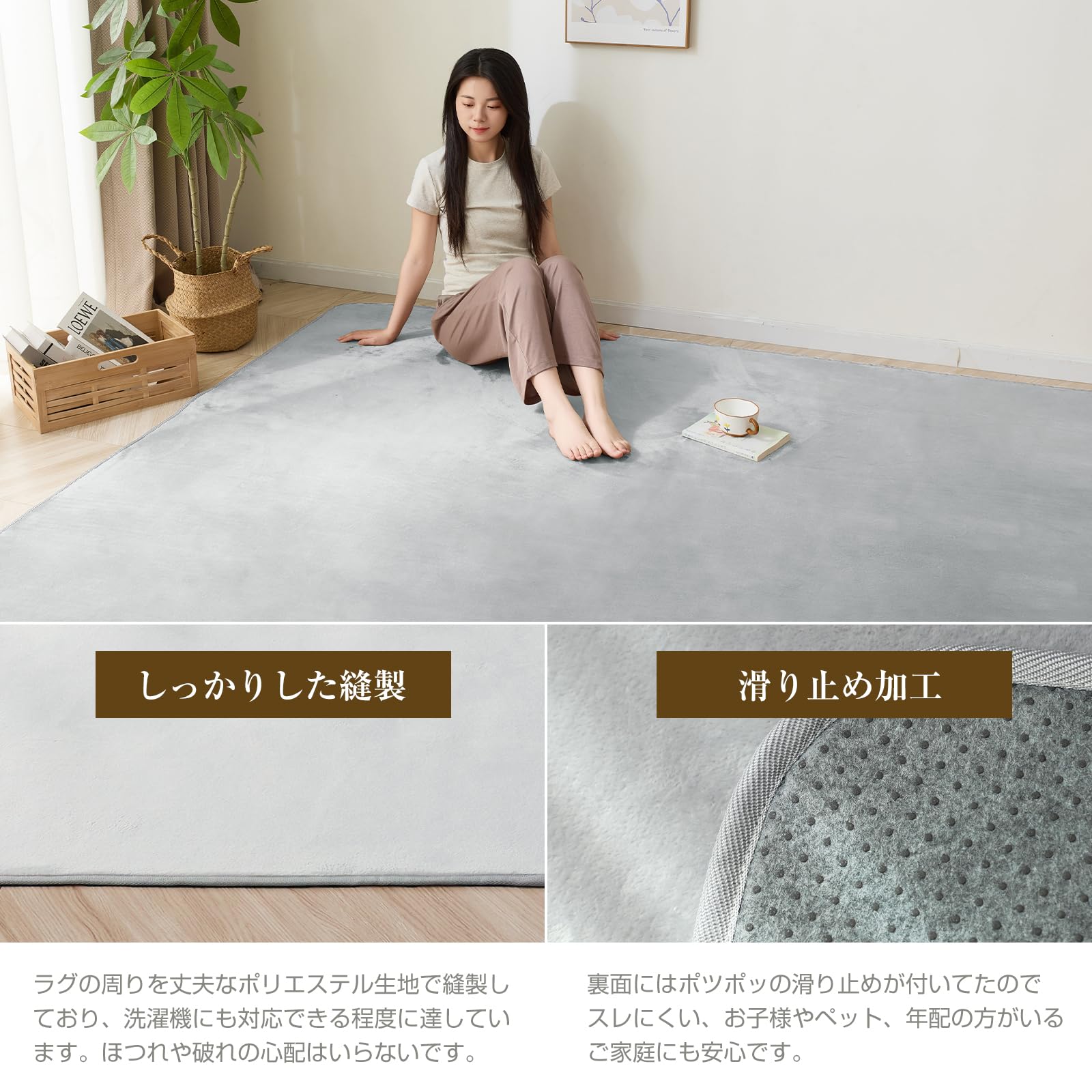 【新春セール】Softime カーペット ラグ ラグマット 200×250cm(約3畳)絨毯 滑り止め付 ラグカーペット 軽量設計 洗える 地毯 抗菌 防臭 防ダニ フランネルラグ オールシーズン 床暖房 ホットカーペット対応 無地・グレー | ニコニコSHOP