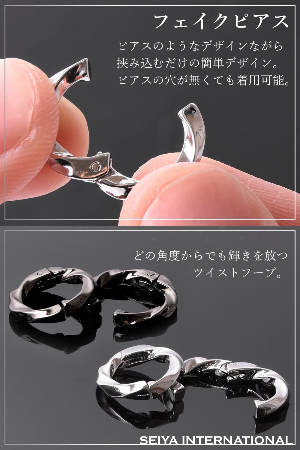 [SEIYA INTERNATIONAL] イヤリング メンズ フェイクピアス イヤーカフ ツイストフープ 両耳 2個セット