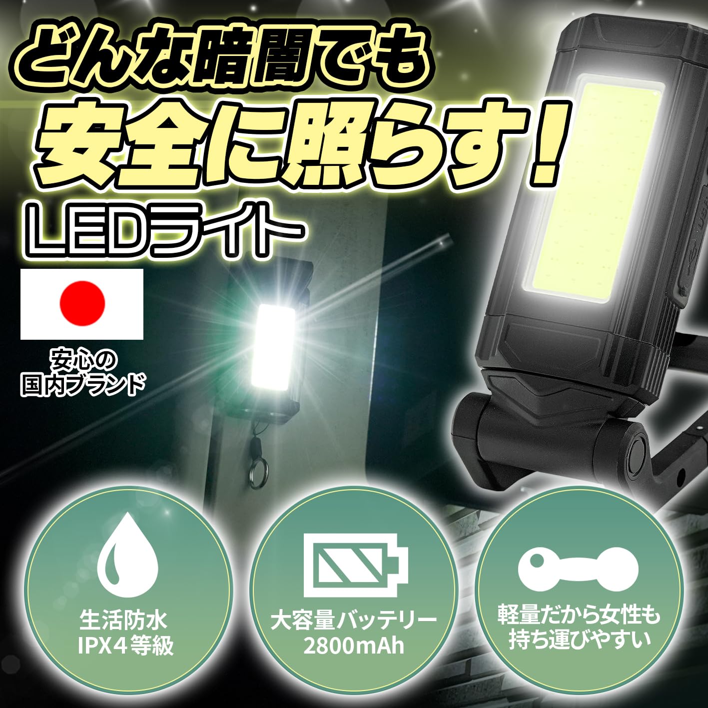 ・【LED・COB作業灯1台4役,ストラップ付】先端部のLEDで懐中電灯として、正面のCOBでワークライト、緊急時には赤色灯、さらには2800mAhのモバイルバッテリー(PSE認証済)としてもご利用できます。ストラップ付で、魚釣りや犬の散歩などにも便利です。LDD照射距離80M、COB400㏐と高輝度設計になっています。